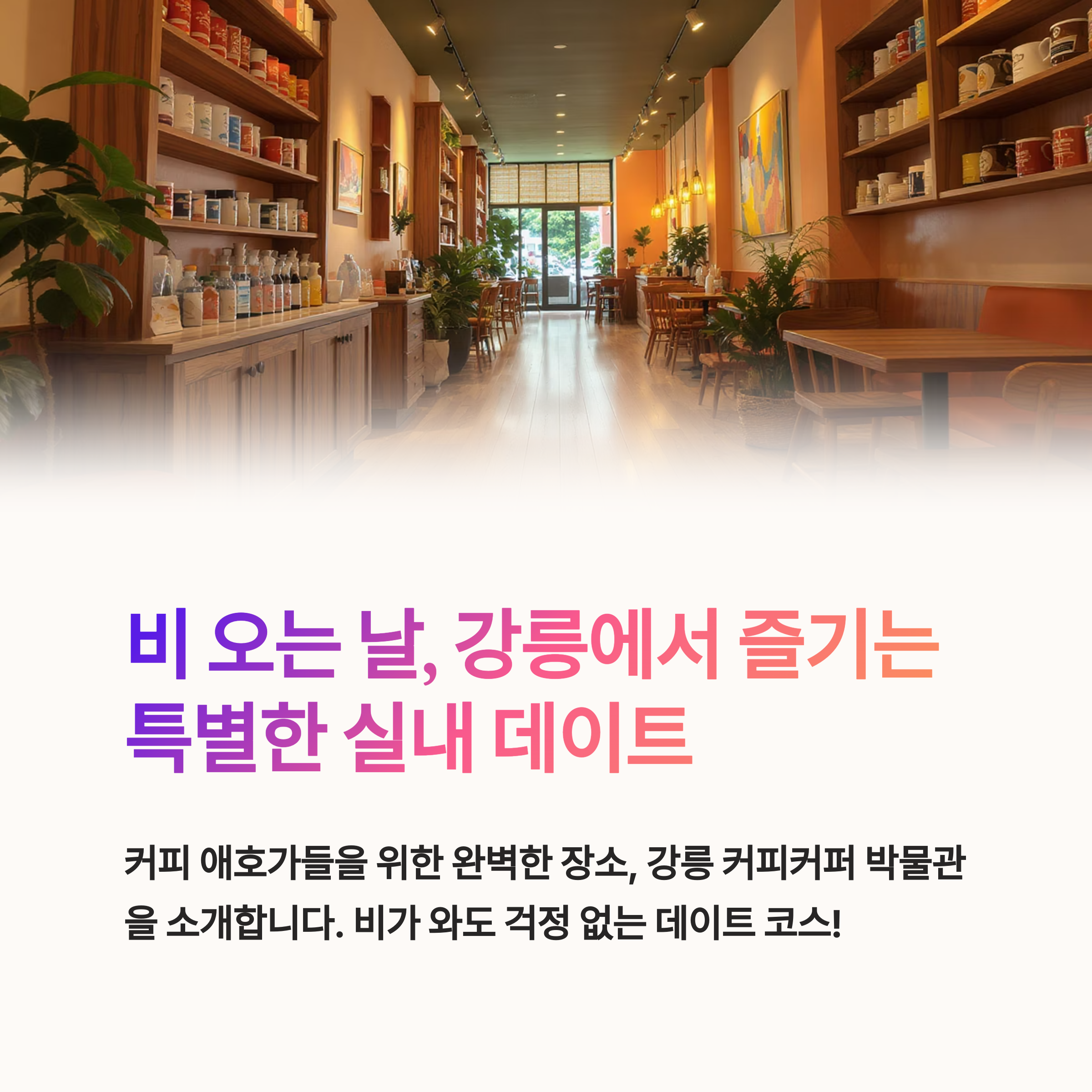 | Q. 비 오는 날 강릉 커피커퍼 박물관에서 시간을 보낼만한 이유는 무엇인가요? |