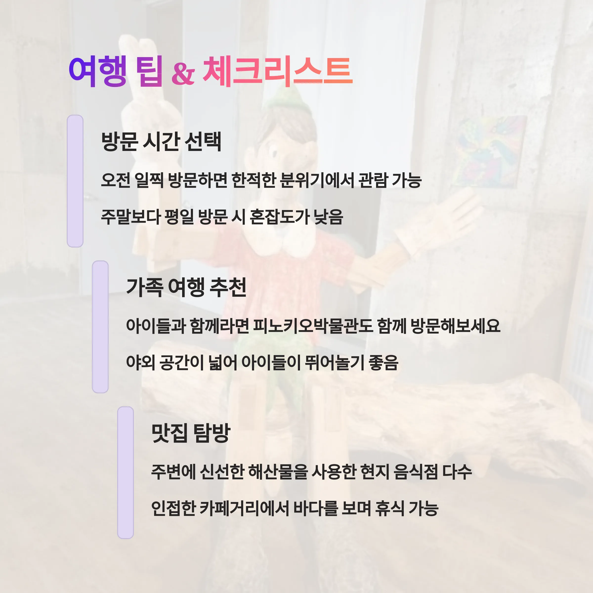 아이들과 함께 여행하는 경우, 피노키오박물관을 꼭 방문해 보세요.