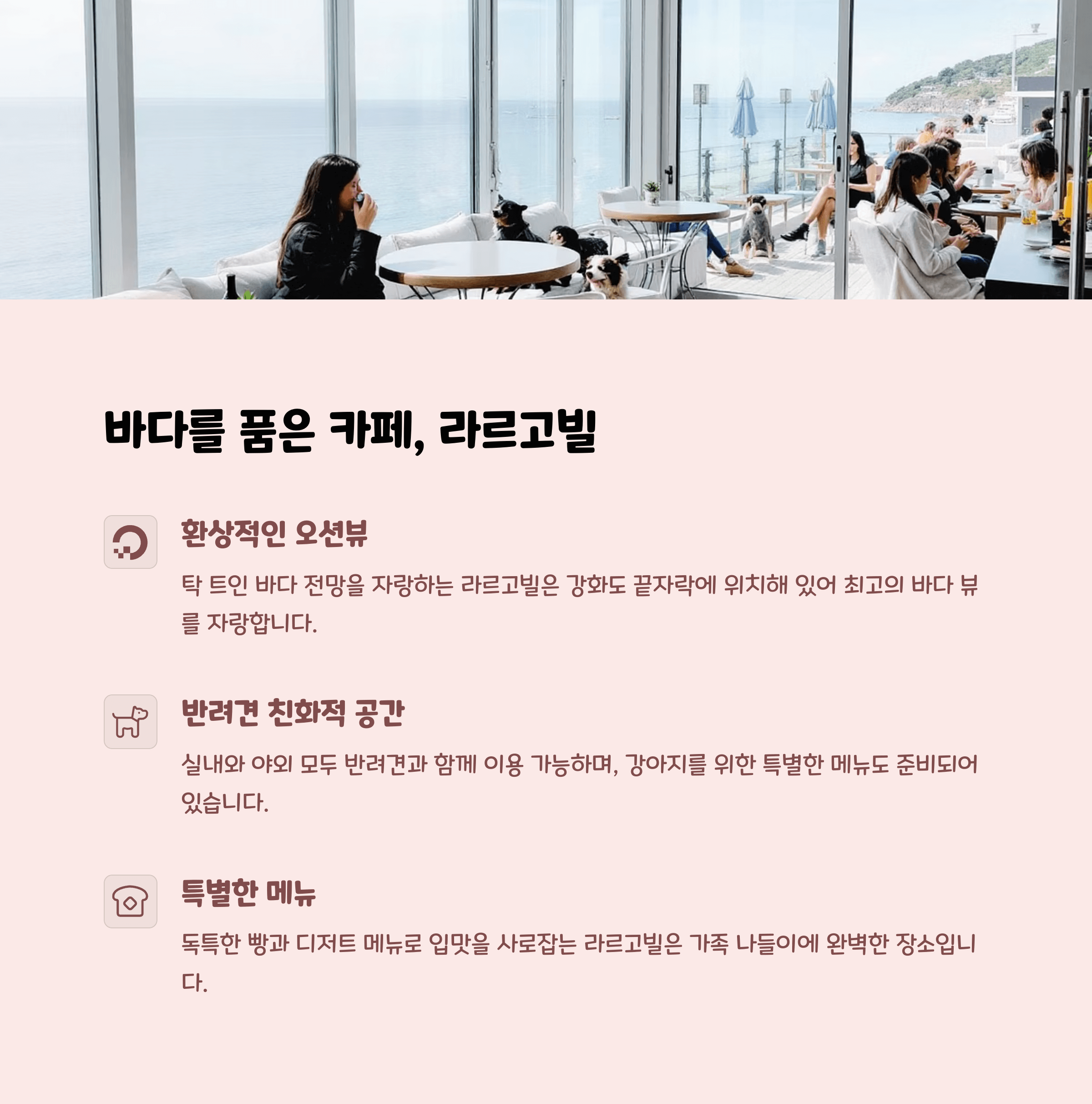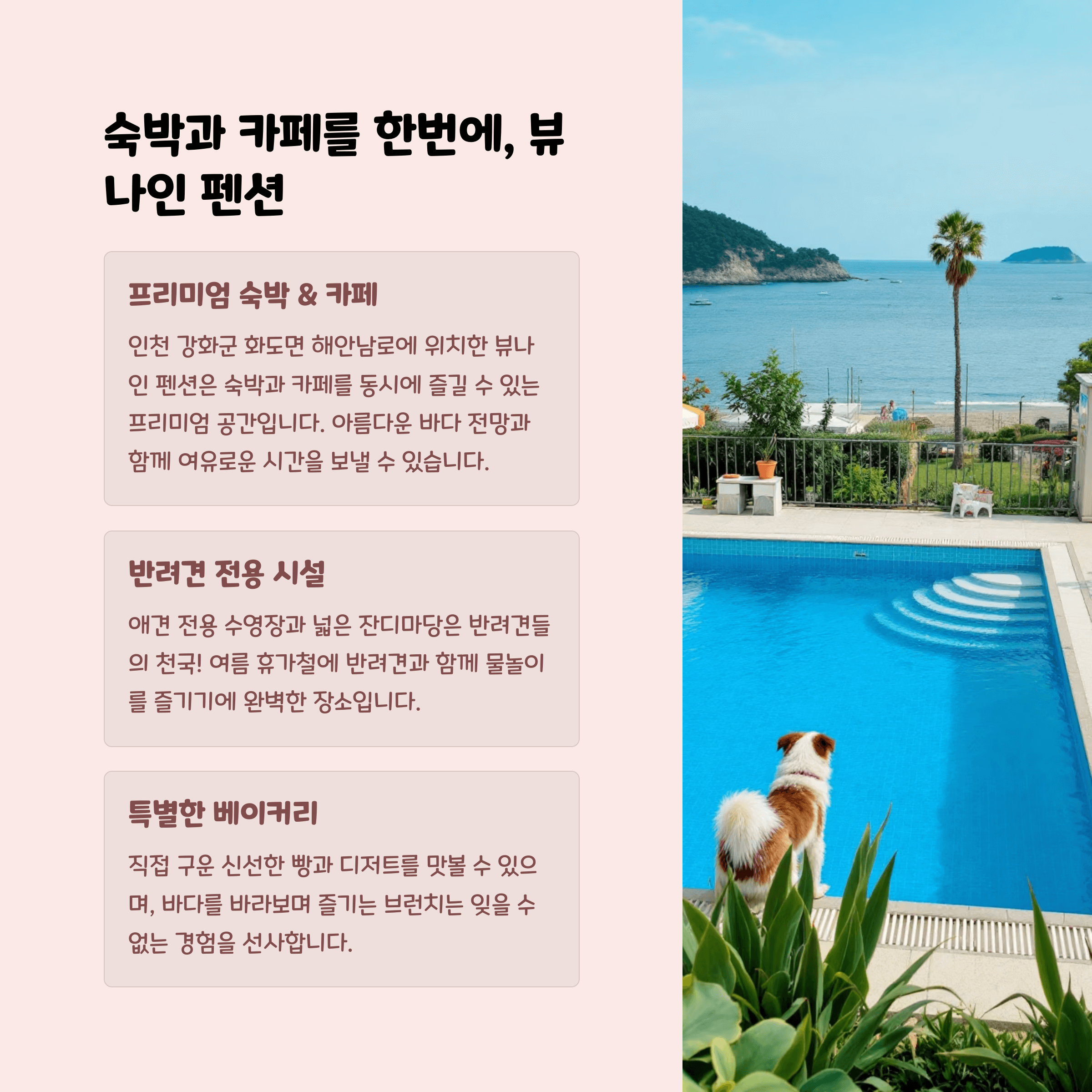 | 핵심 제공 경험 | 바다 뷰, 반려견 친화 환경 |