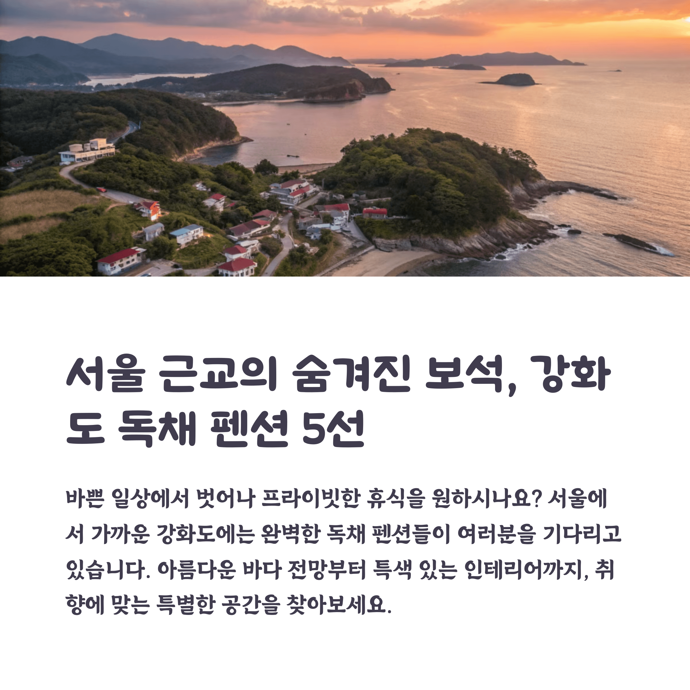 오늘은 강화도를 방문하는 여행자님들을 위해 프라이빗한 독채 숙소를 추천해 드리려고 합니다.