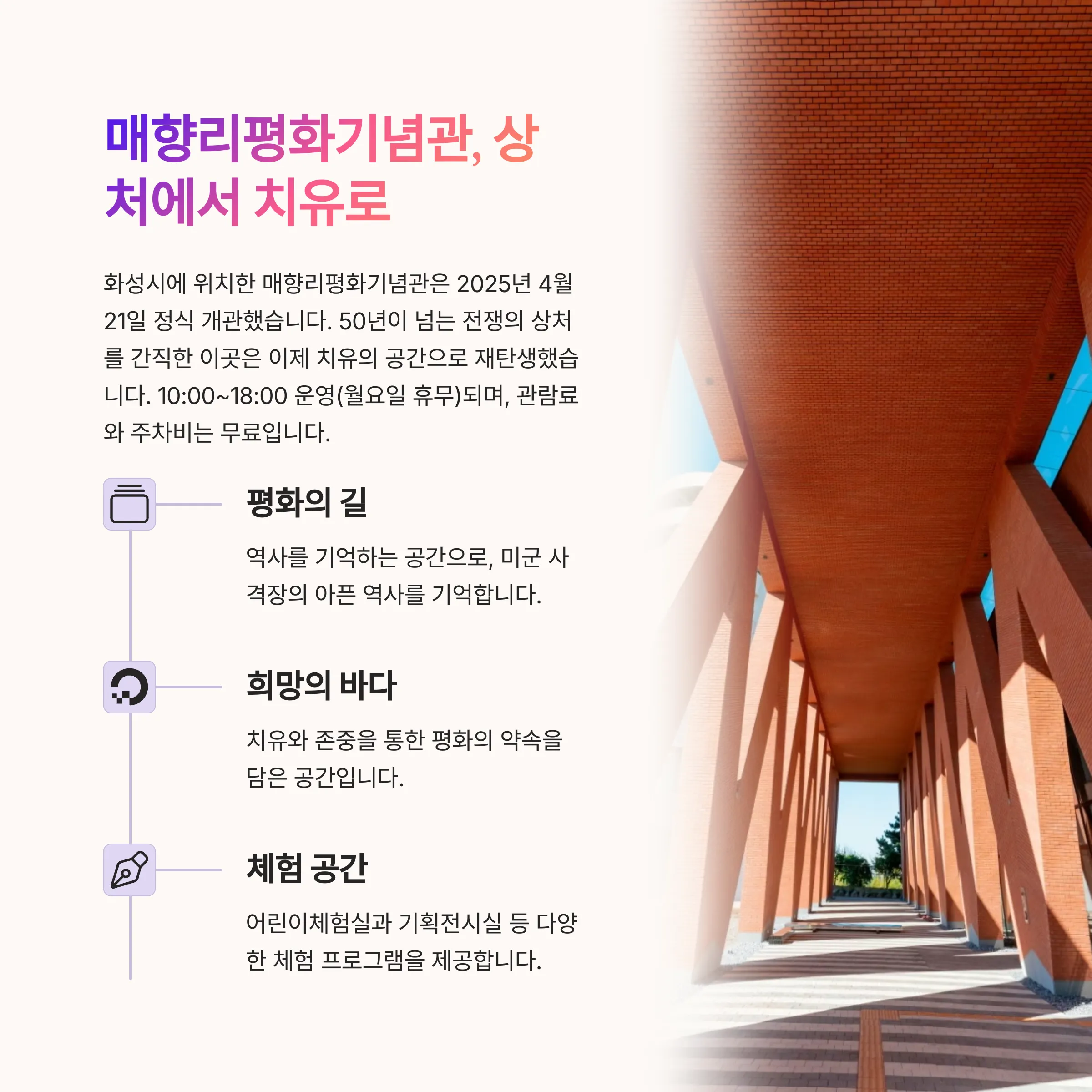 또한 화성시에서는 2025년 4월 매향리평화기념관이 정식 개관되었습니다.