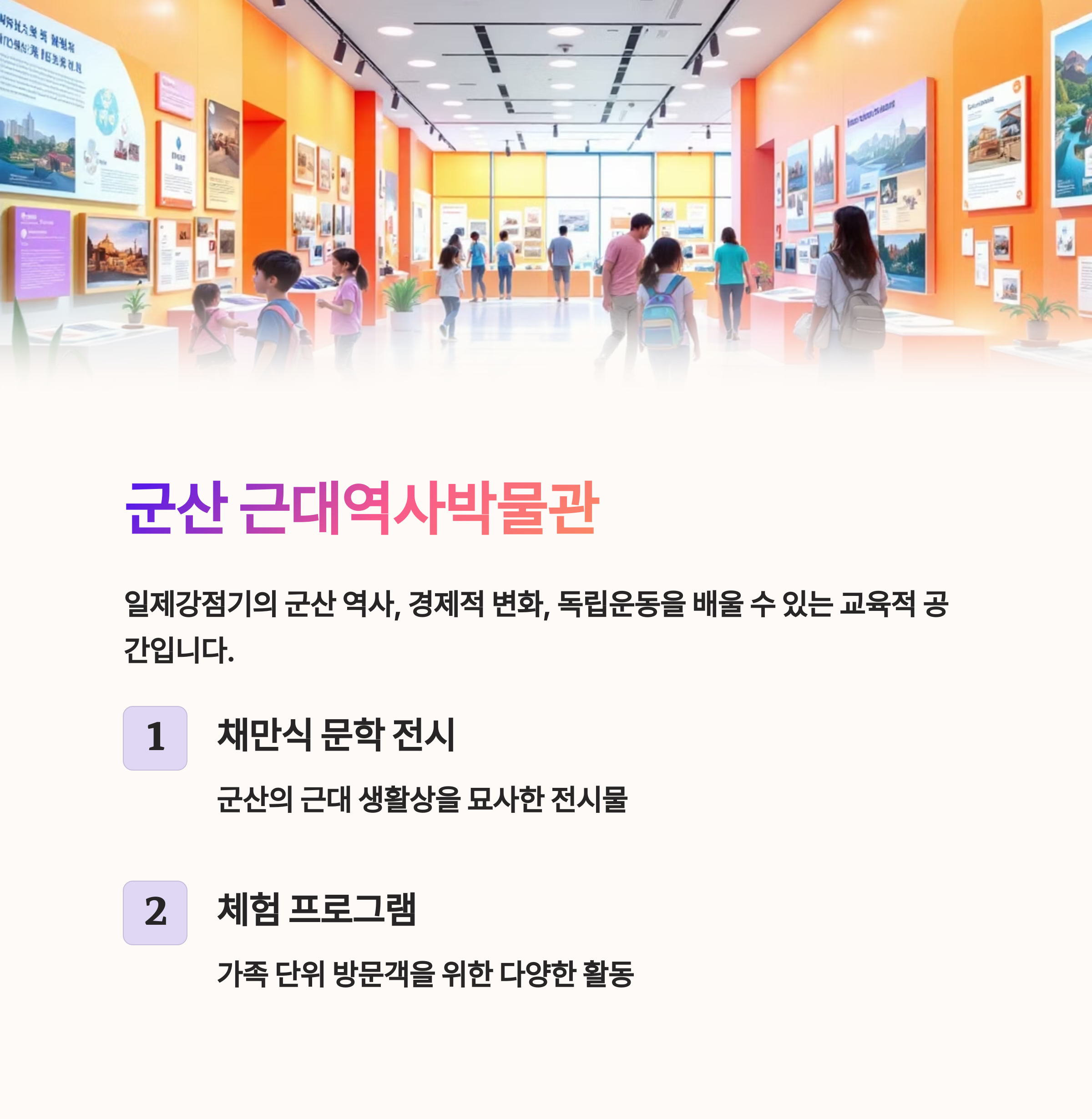| 군산 근대역사박물관 | 역사 전시와 체험 | 메인 거리에 위치 |