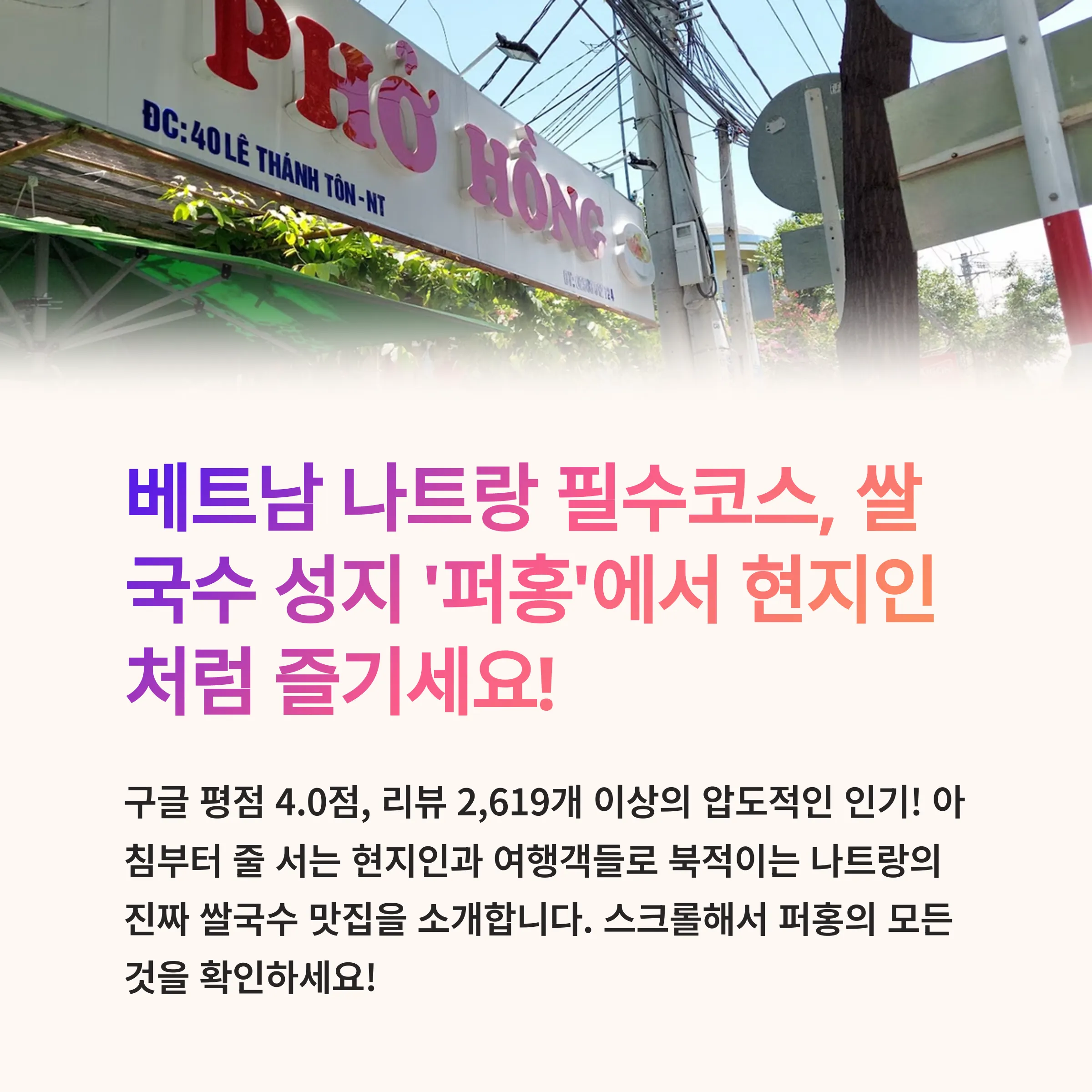 저 역시 비슷한 경험을 했기에 오늘은 나트랑 쌀국수의 대표적 맛집인 퍼홍에 대한 모든 정보를 모아왔습니다!