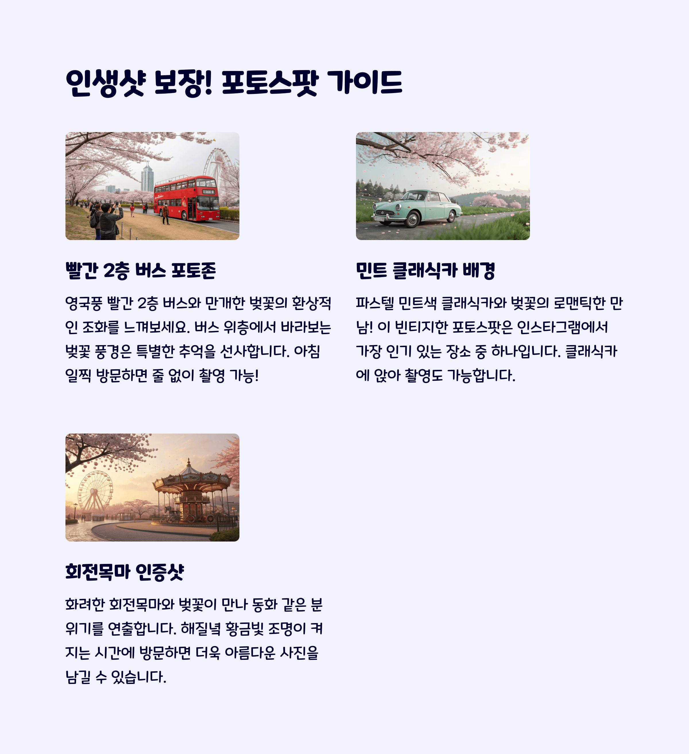 이 정보를 참고하시면 더욱 풍성한 봄의 추억을 만드실 수 있을 거에요.