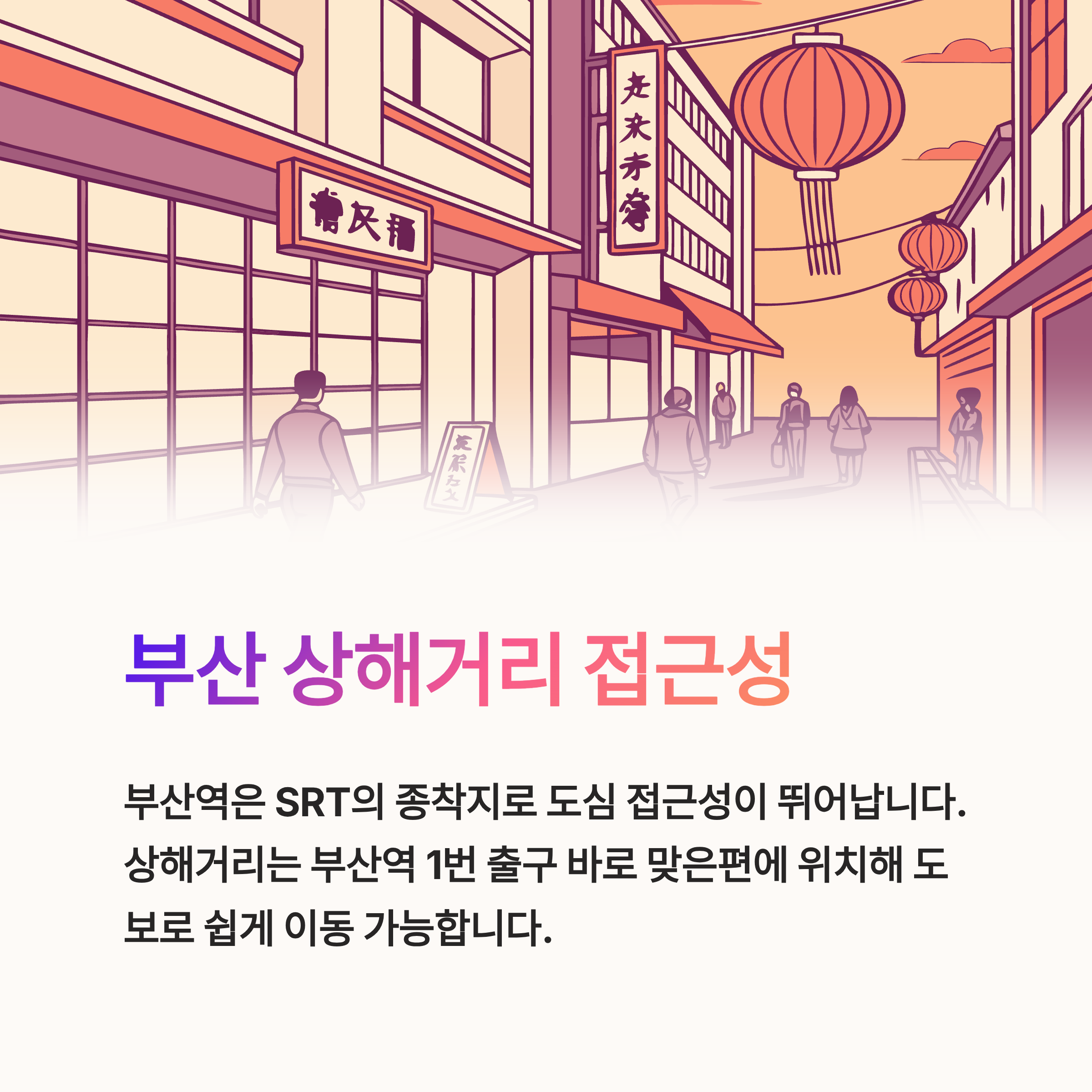 특히, 상해거리는 부산역 바로 맞은편에 위치해 있어 도보로 편하게 이동 가능해 편리하게 방문할 수 있는 명소입니다.