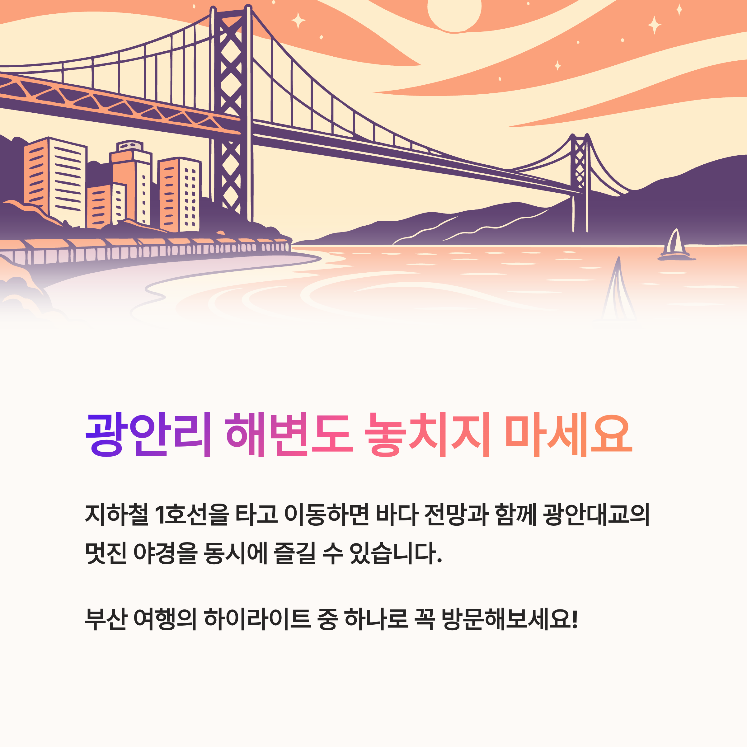 | 광안리 해변 | 바다 전망, 광안대교를 볼 수 있는 대표적인 아름다운 해변. |