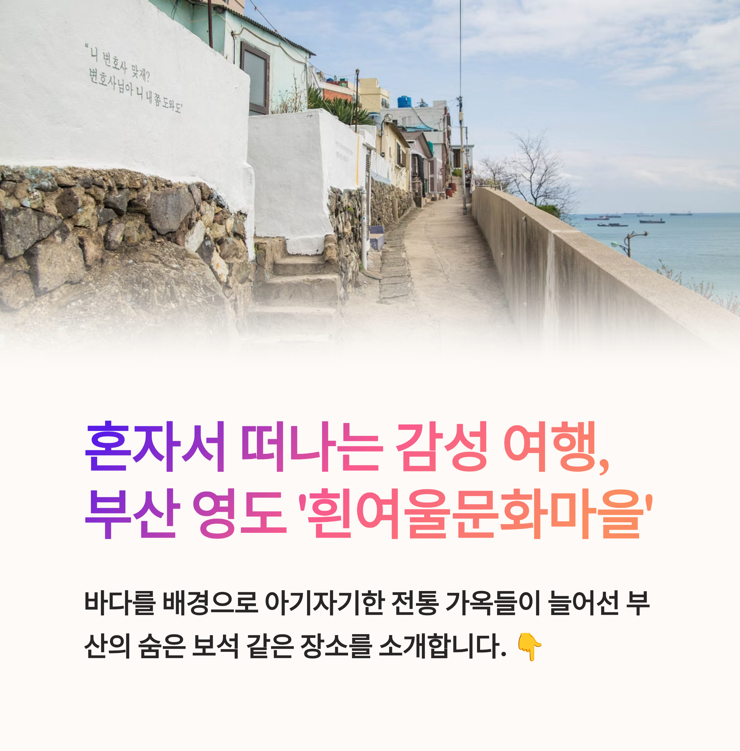 오늘은 '부산 영도 흰여울문화마을'이라는 아름다운 장소에 관해 상세히 안내해 드리겠습니다.