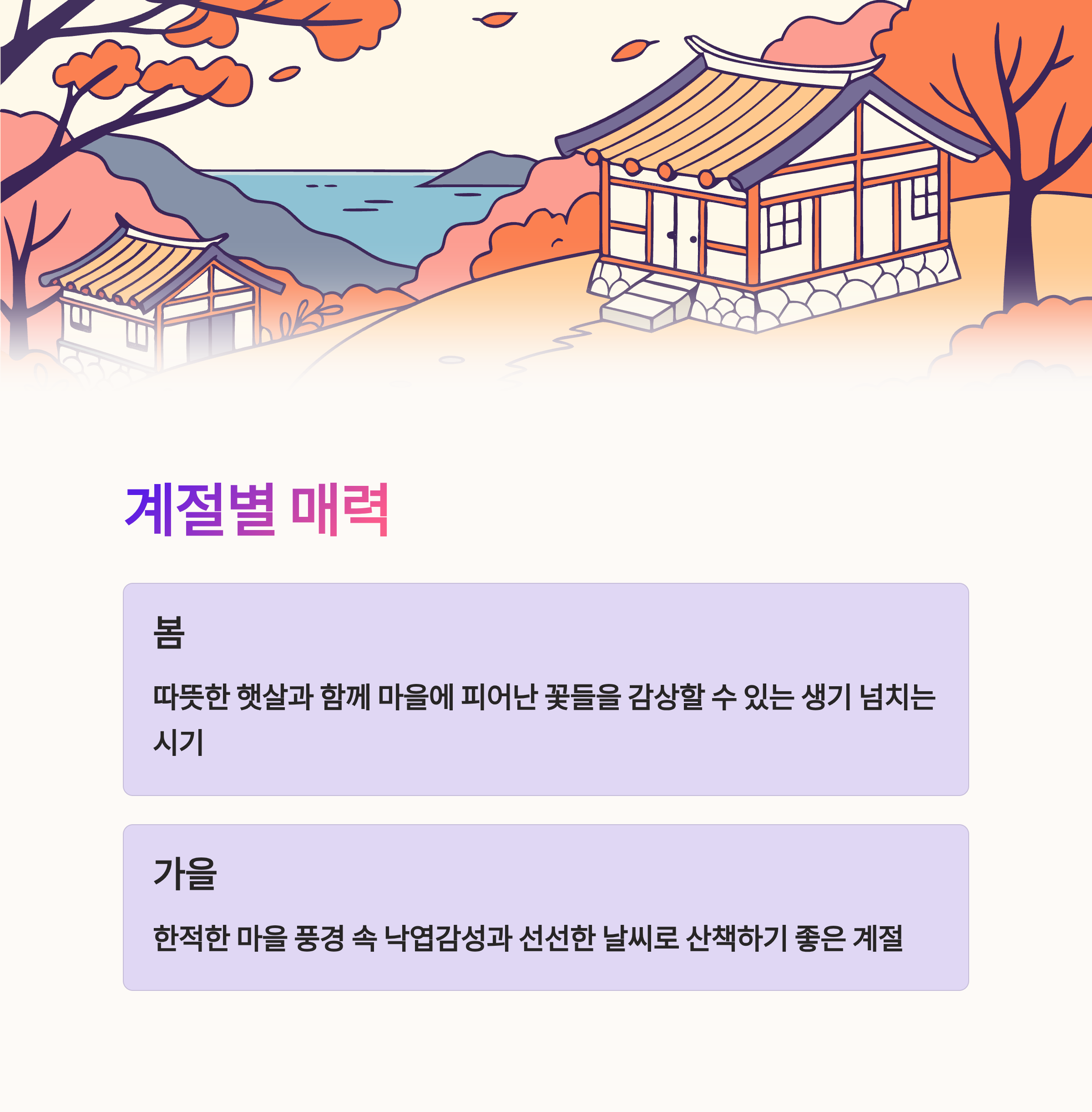 또한, 마을이 가지고 있는 역사적 가치와 주민들의 생활이 어우러져 평화로움을 더합니다.