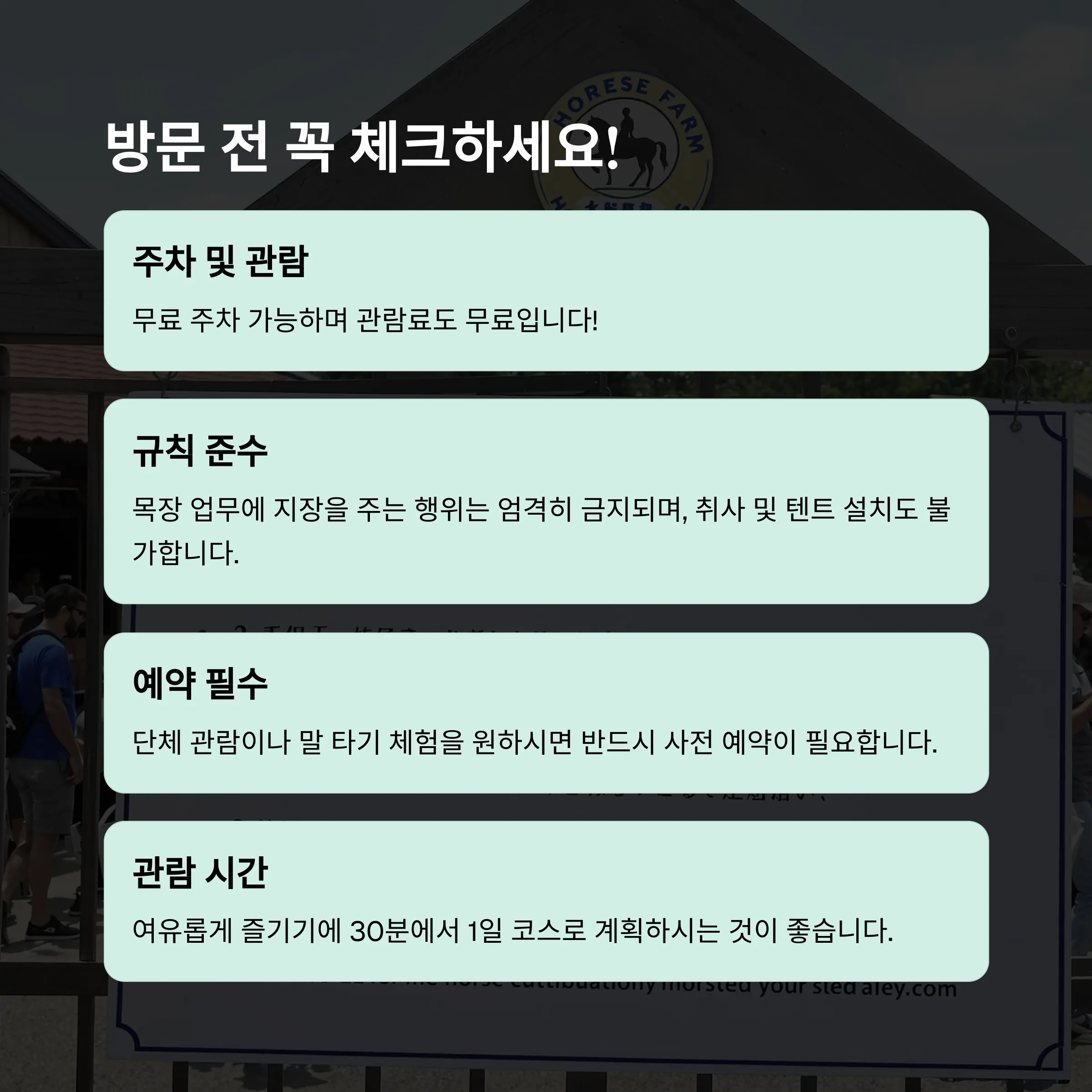 | Q. 목장 방문 전 반드시 알아둬야 할 주의사항이 있나요? |