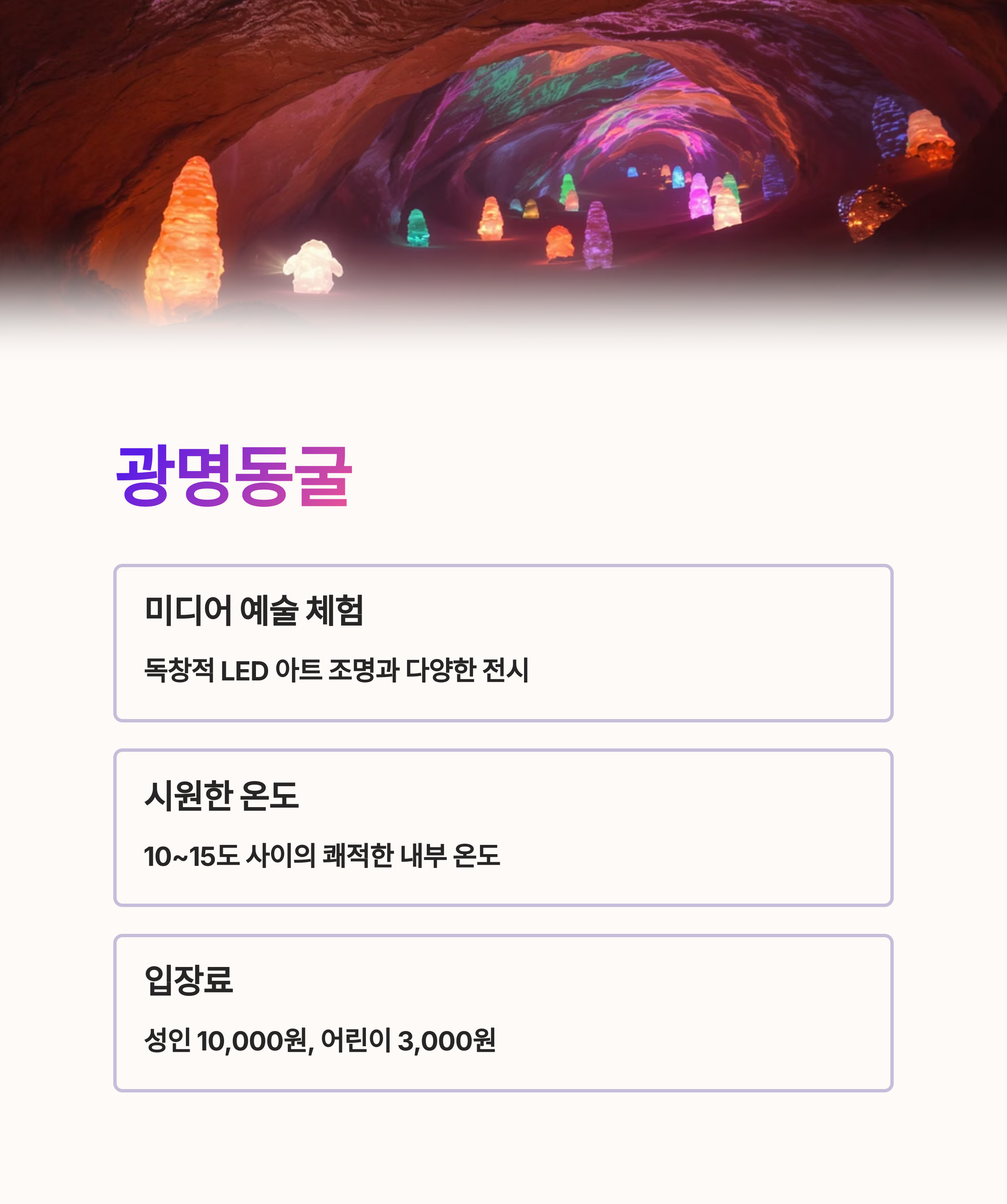 🌟 광명동굴은 미디어 예술로 재미와 시원함을 동시에!