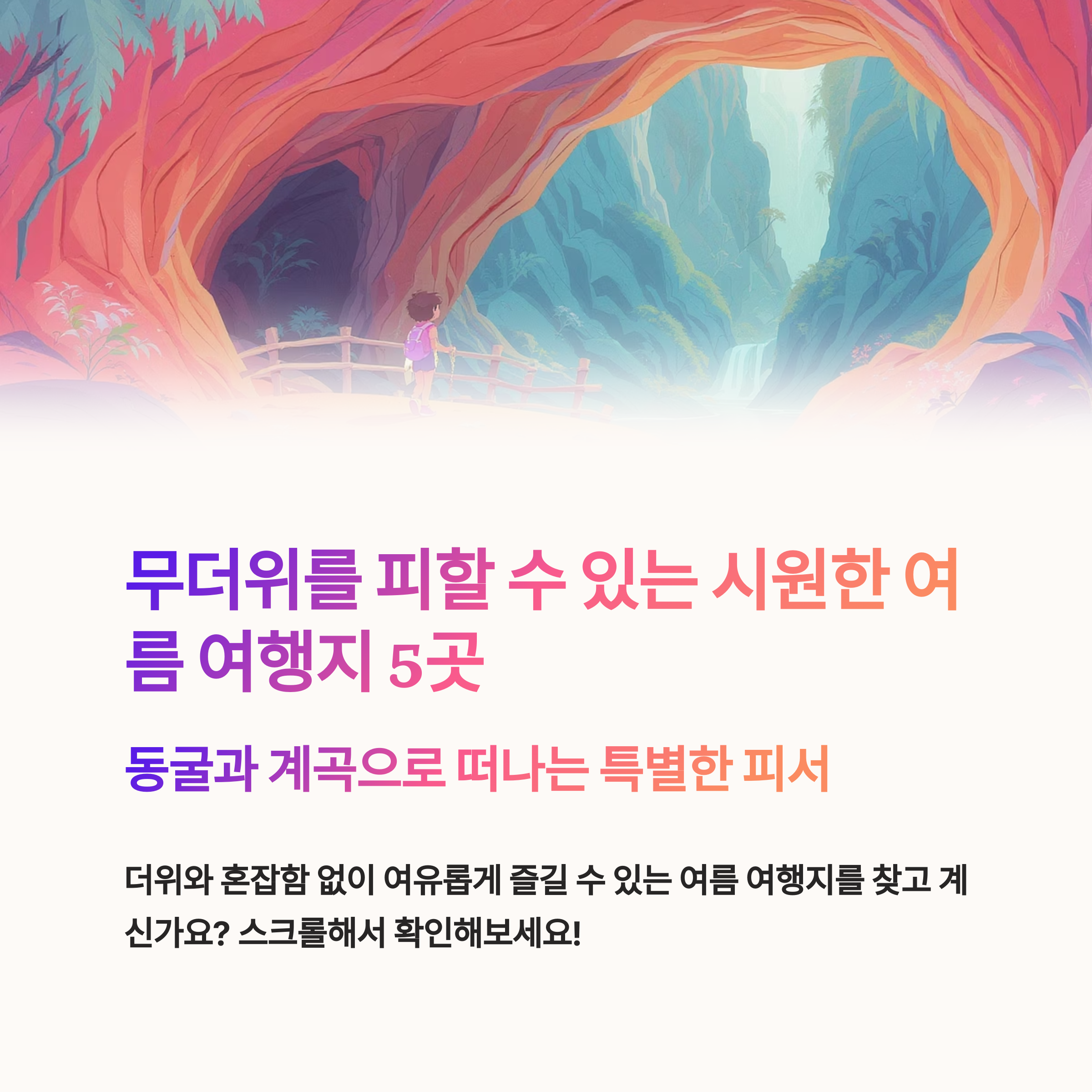 오늘의 주제는 바로 여름철 피서지로 적합한 동굴, 계곡과 같은 특별한 장소들입니다.
