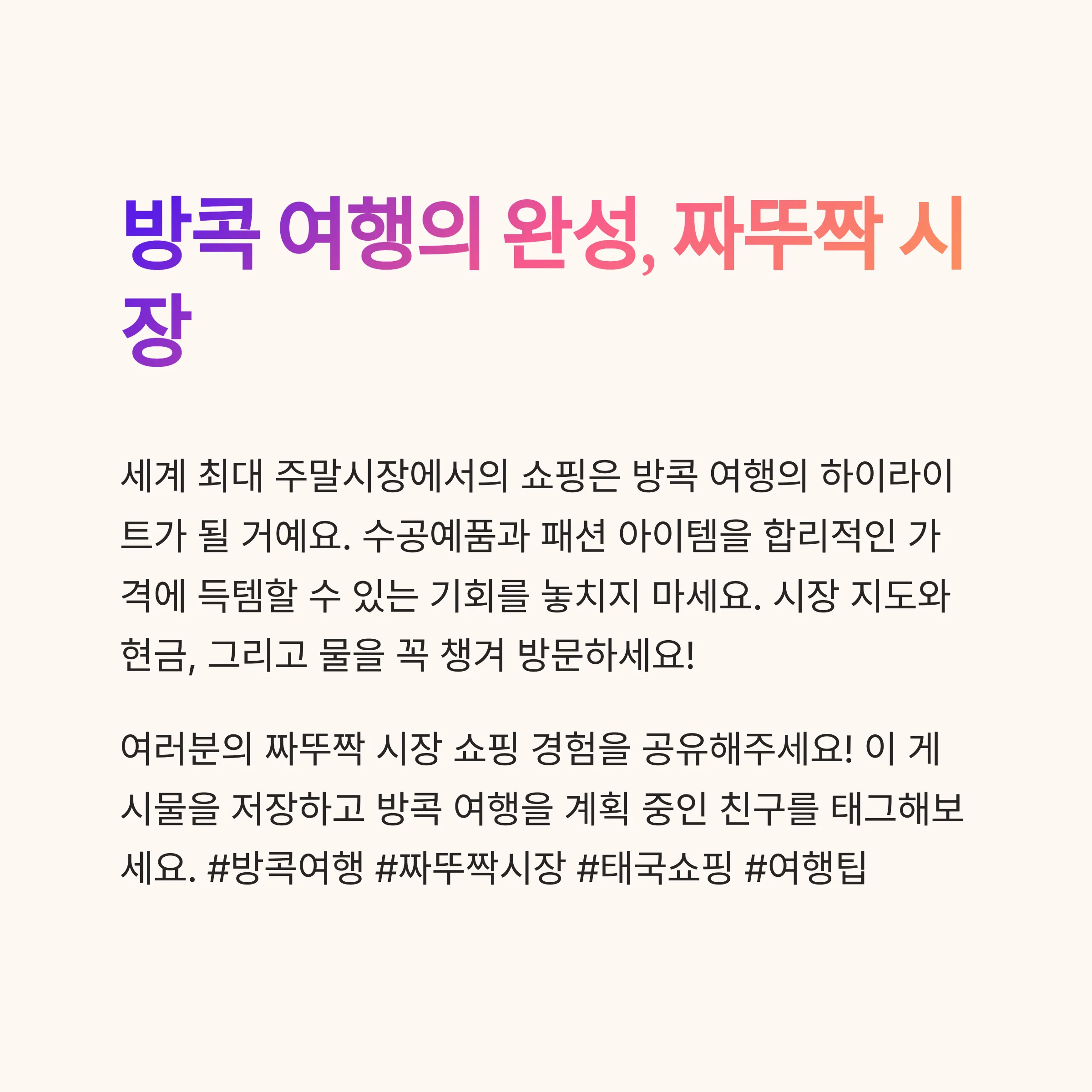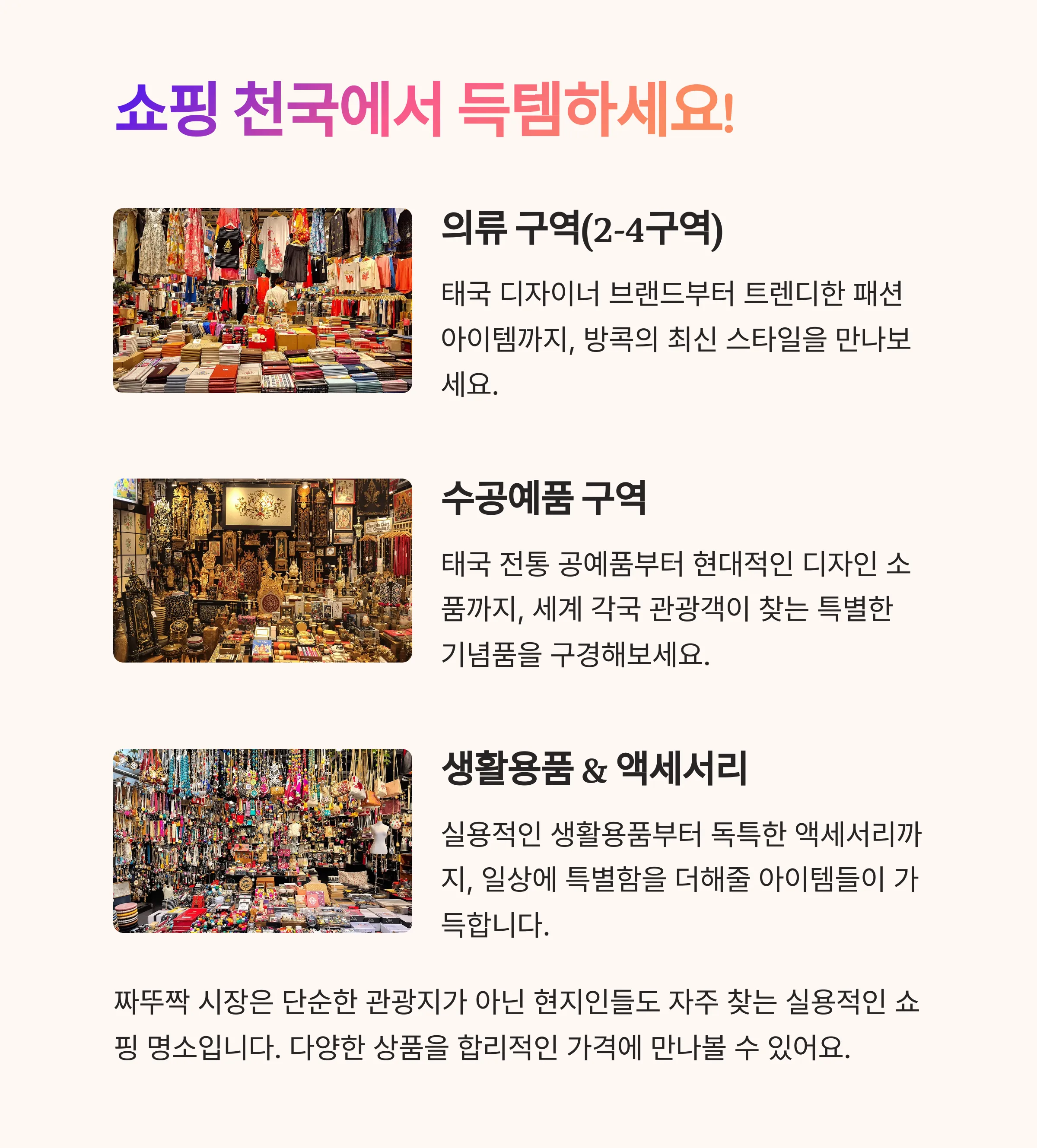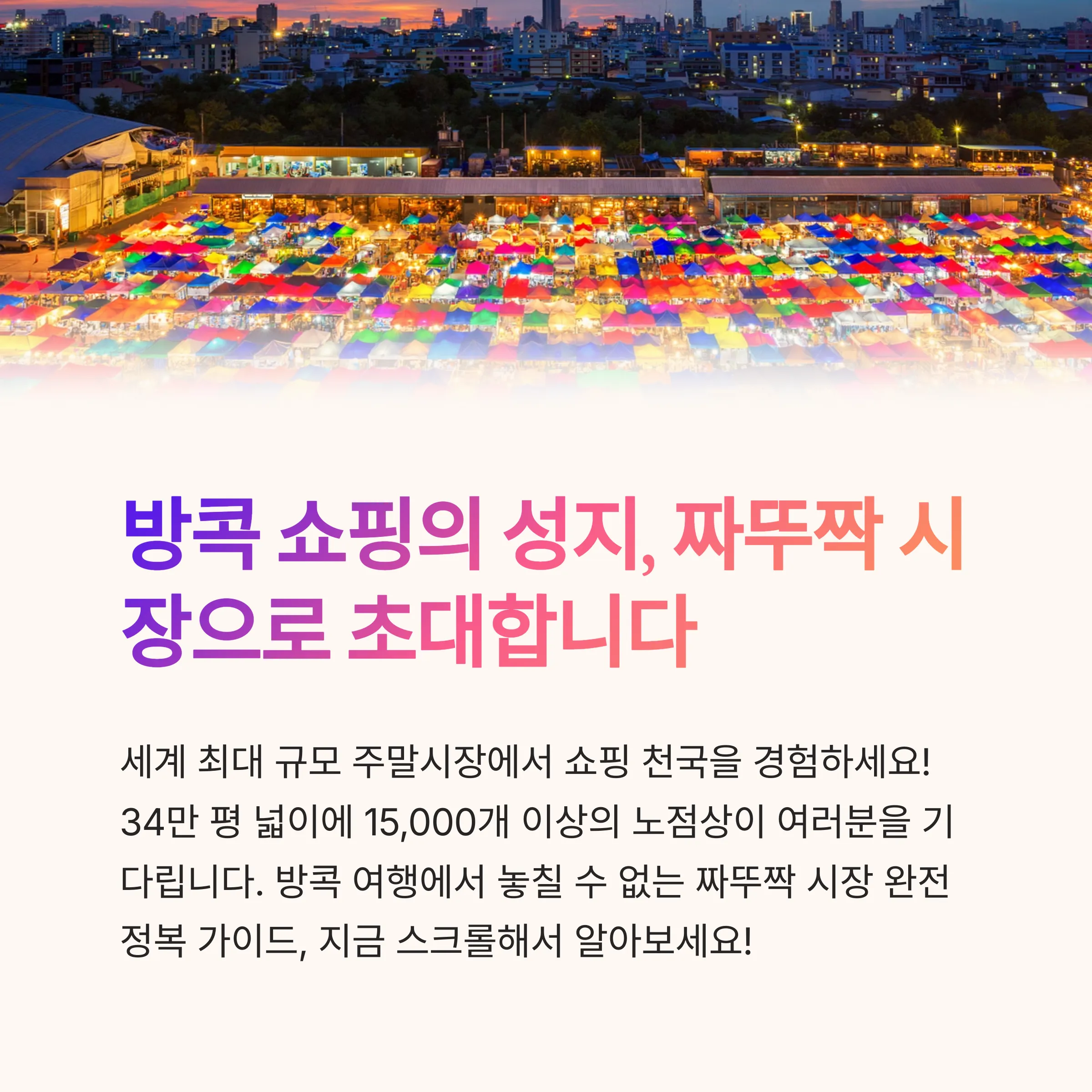 그래서 오늘은 짜뚜짝 시장에서 더욱 즐거운 쇼핑을 만들 수 있는 꿀팁들을 준비했습니다.