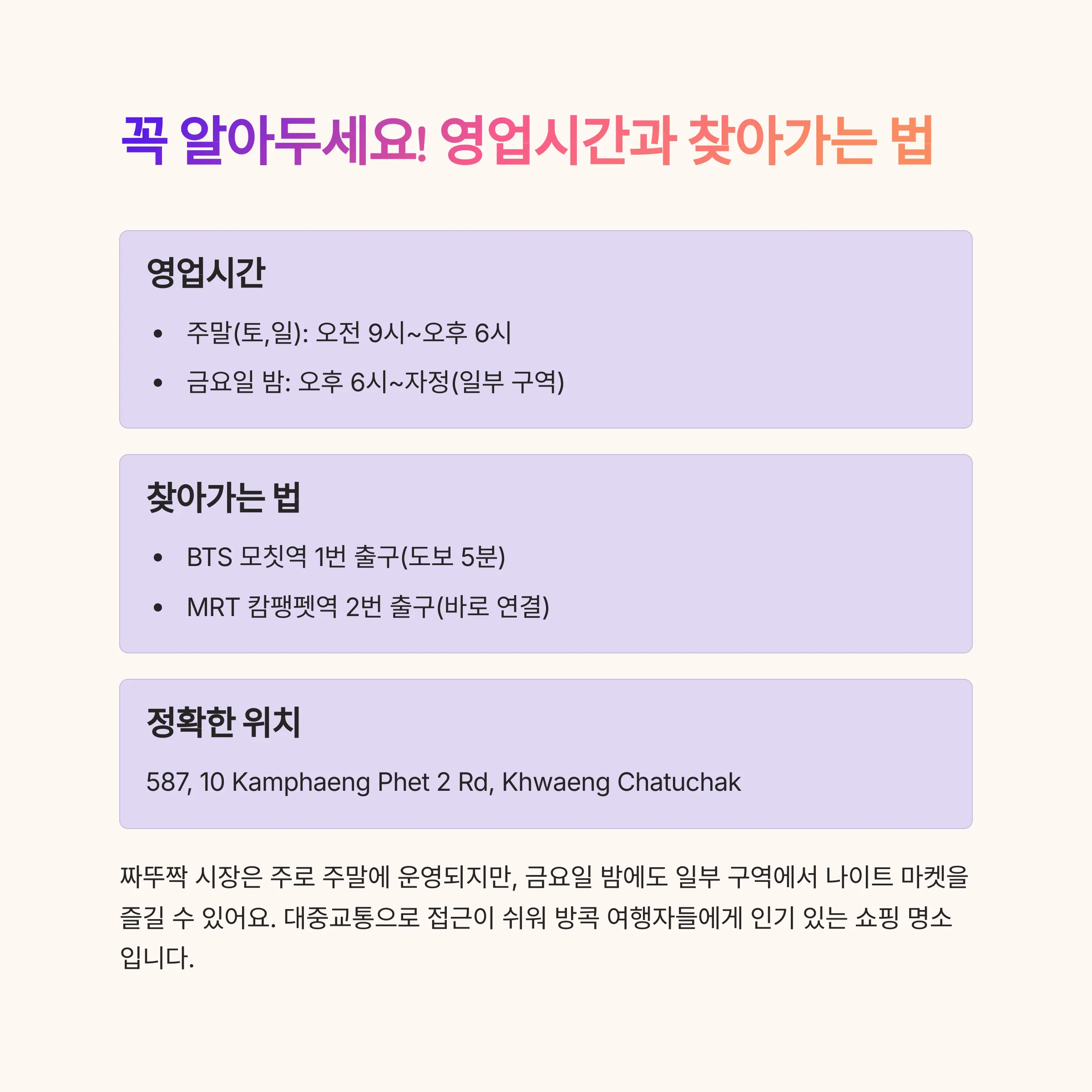 | 시장 위치 | 587, 10 Kamphaeng Phet 2 Rd, Bangkok 10900 |
