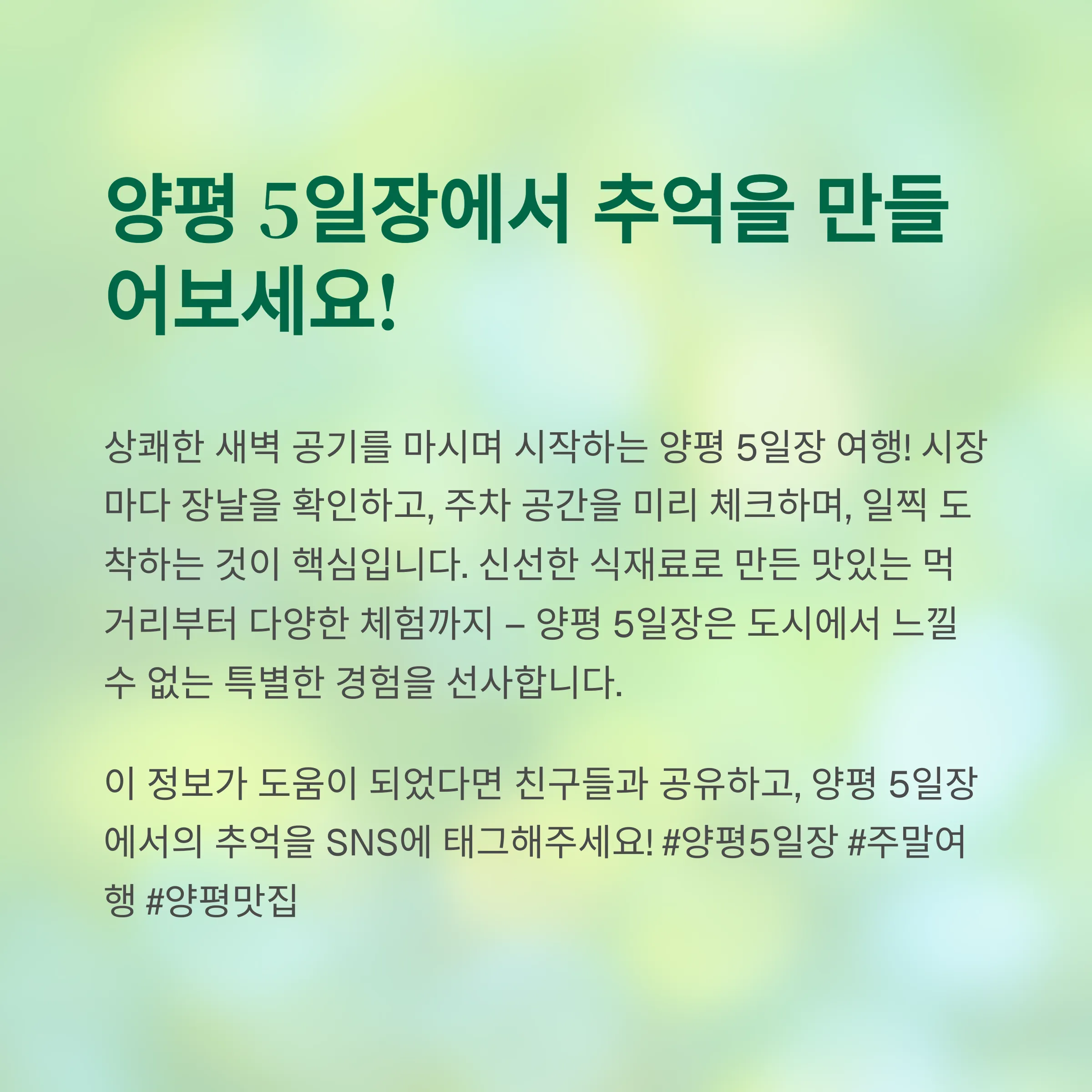 | Q. 양평 5일장 인근 관광 명소는 어디인가요? |