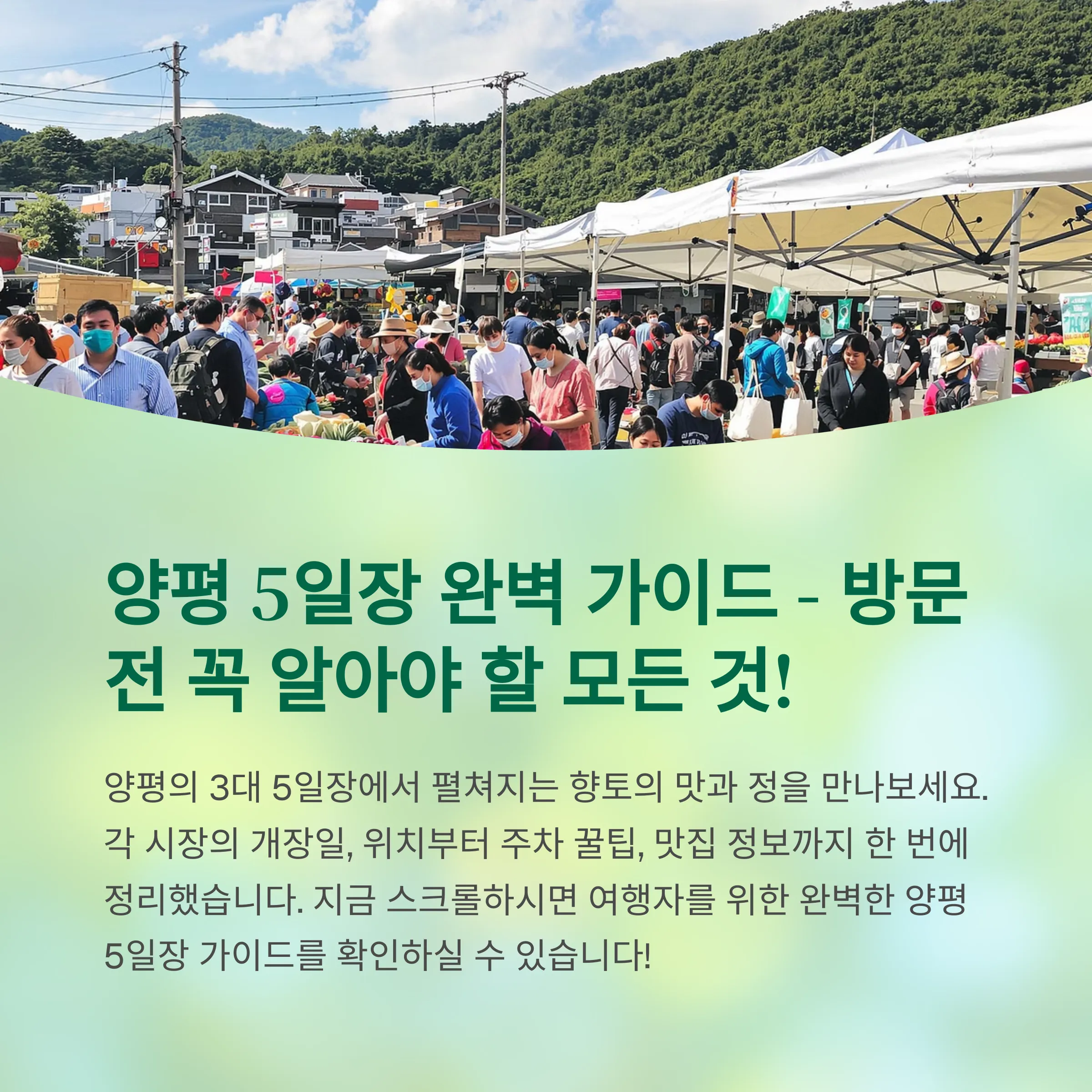 그래서 오늘은 양평 5일장, 오일장, 전통시장 관련 정보를 한눈에 정리해드리려고 합니다.