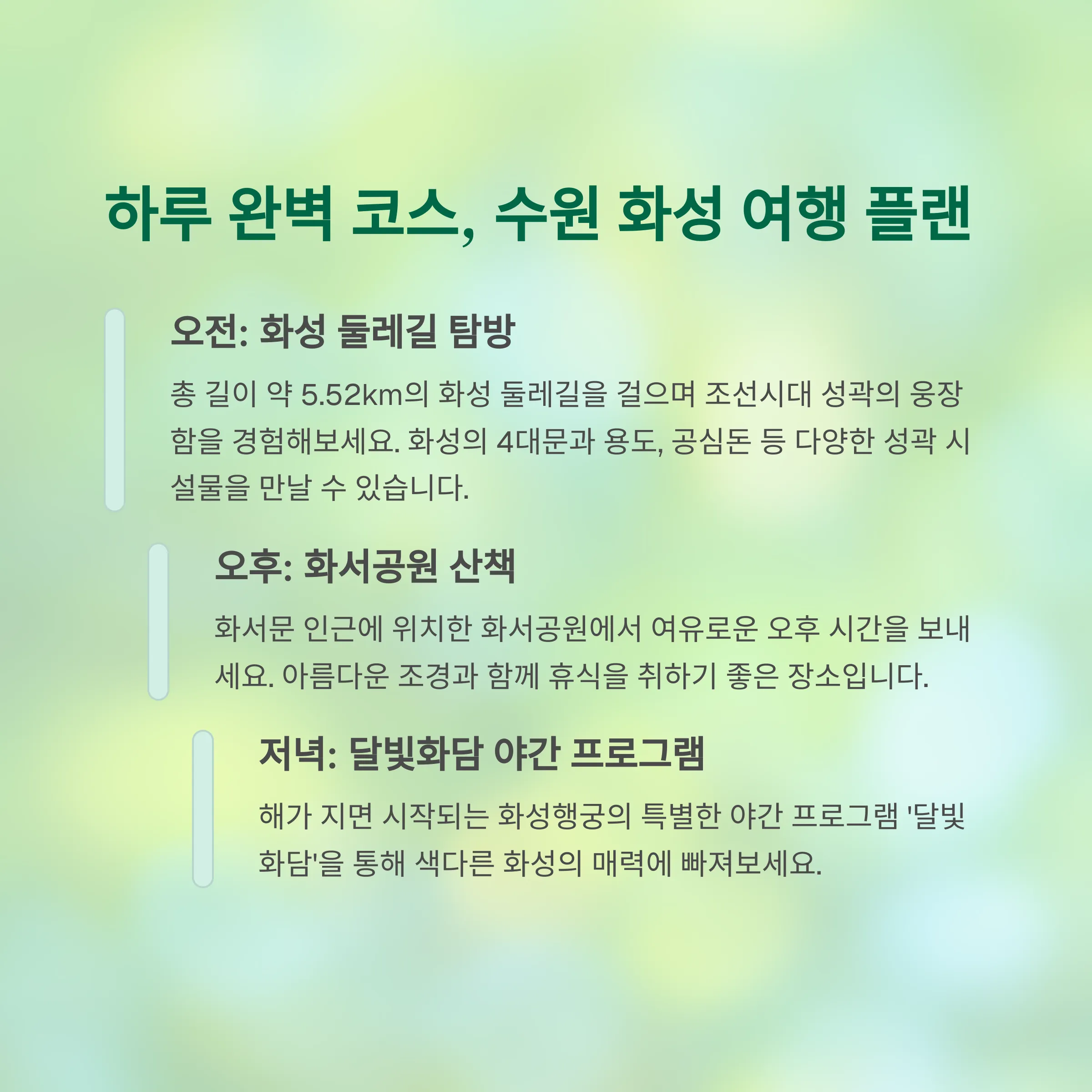 | 화성둘레길 | 5.52km의 완만한 거리, 역사 감상 |