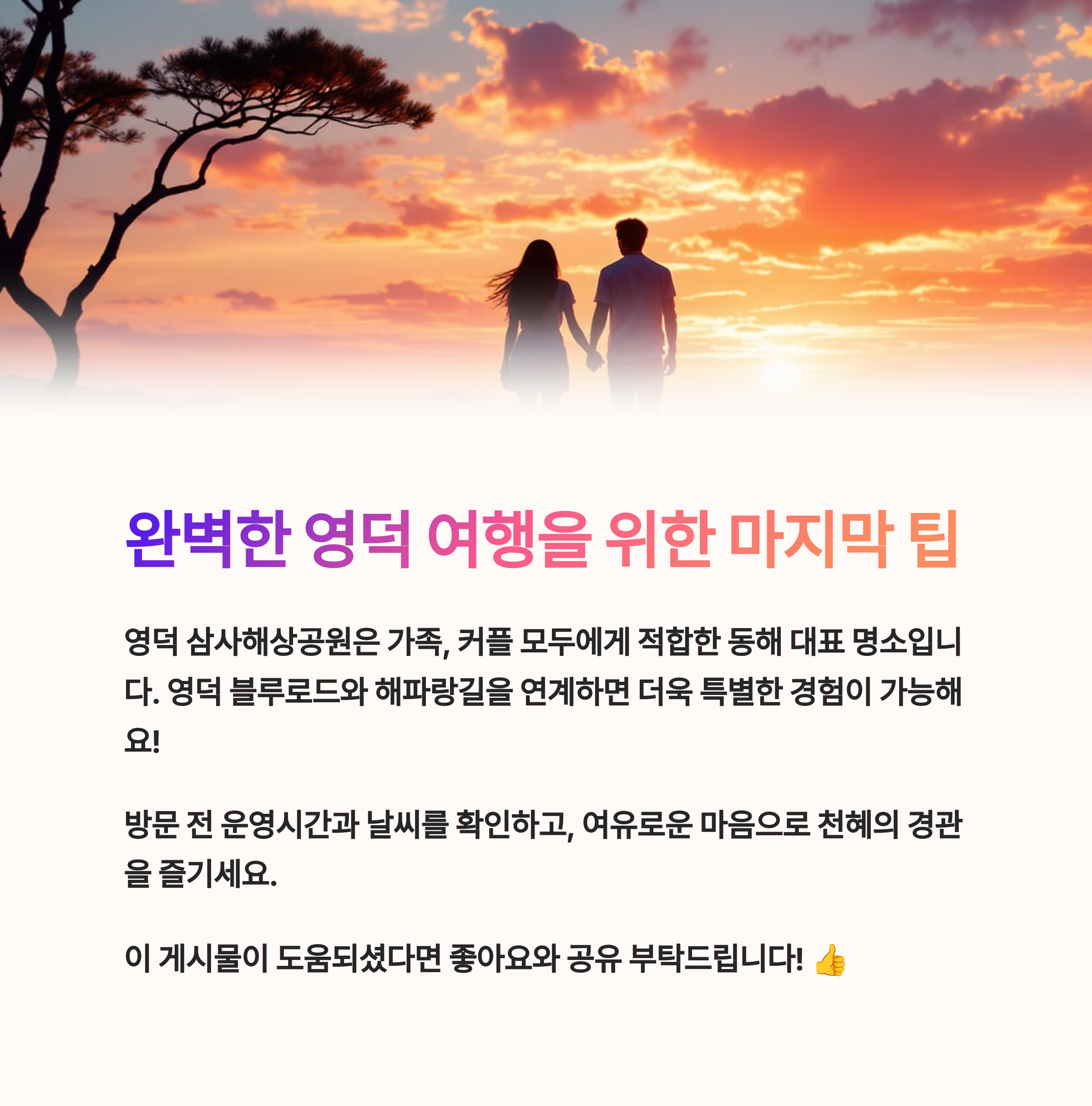 그래서 오늘은 영덕 삼사해상공원을 중심으로 꼭 필요한 정보를 소개하려고 합니다.
