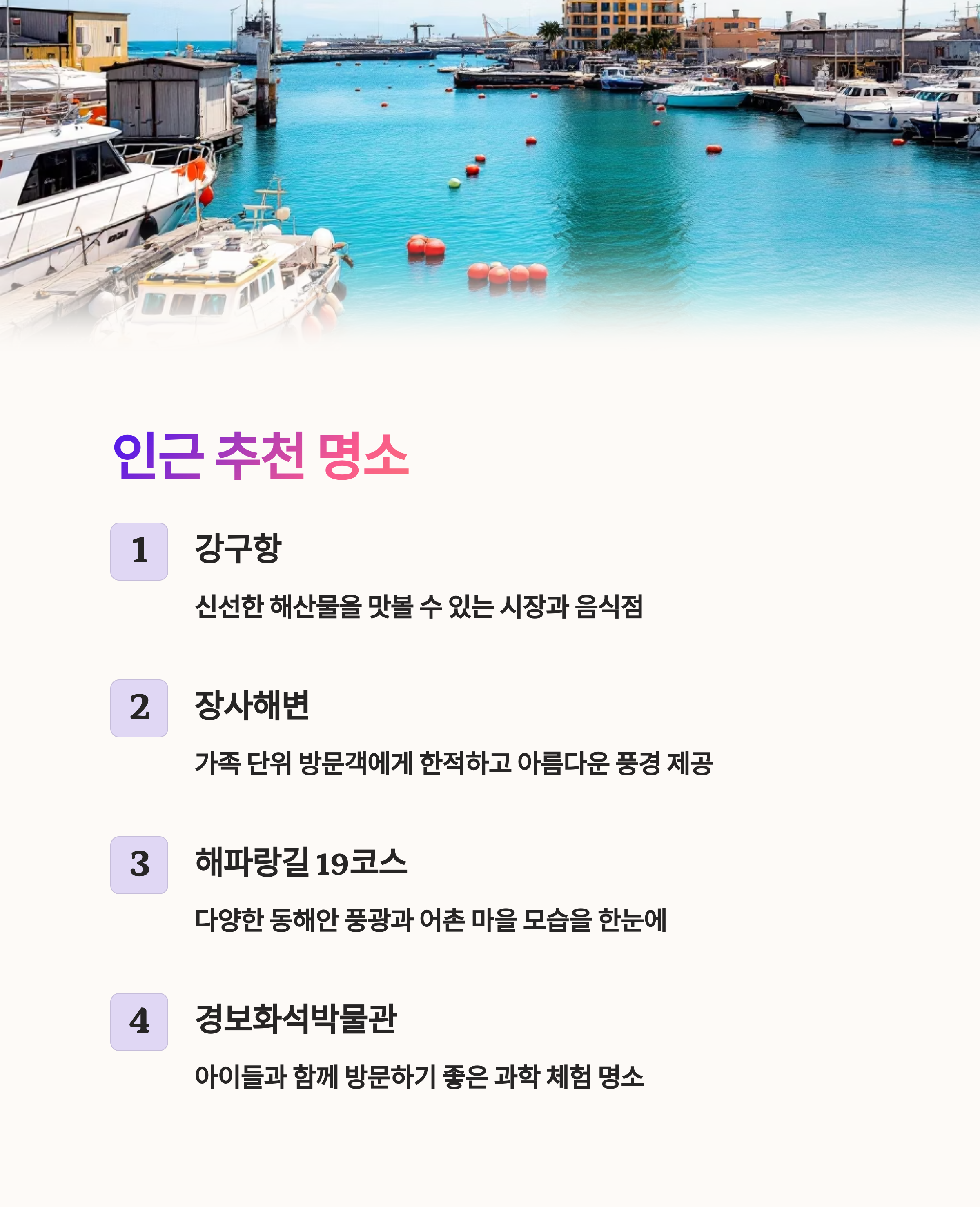 | Q. 영덕 삼사해상공원을 둘러본 후에 추천할 만한 인근 명소는? |