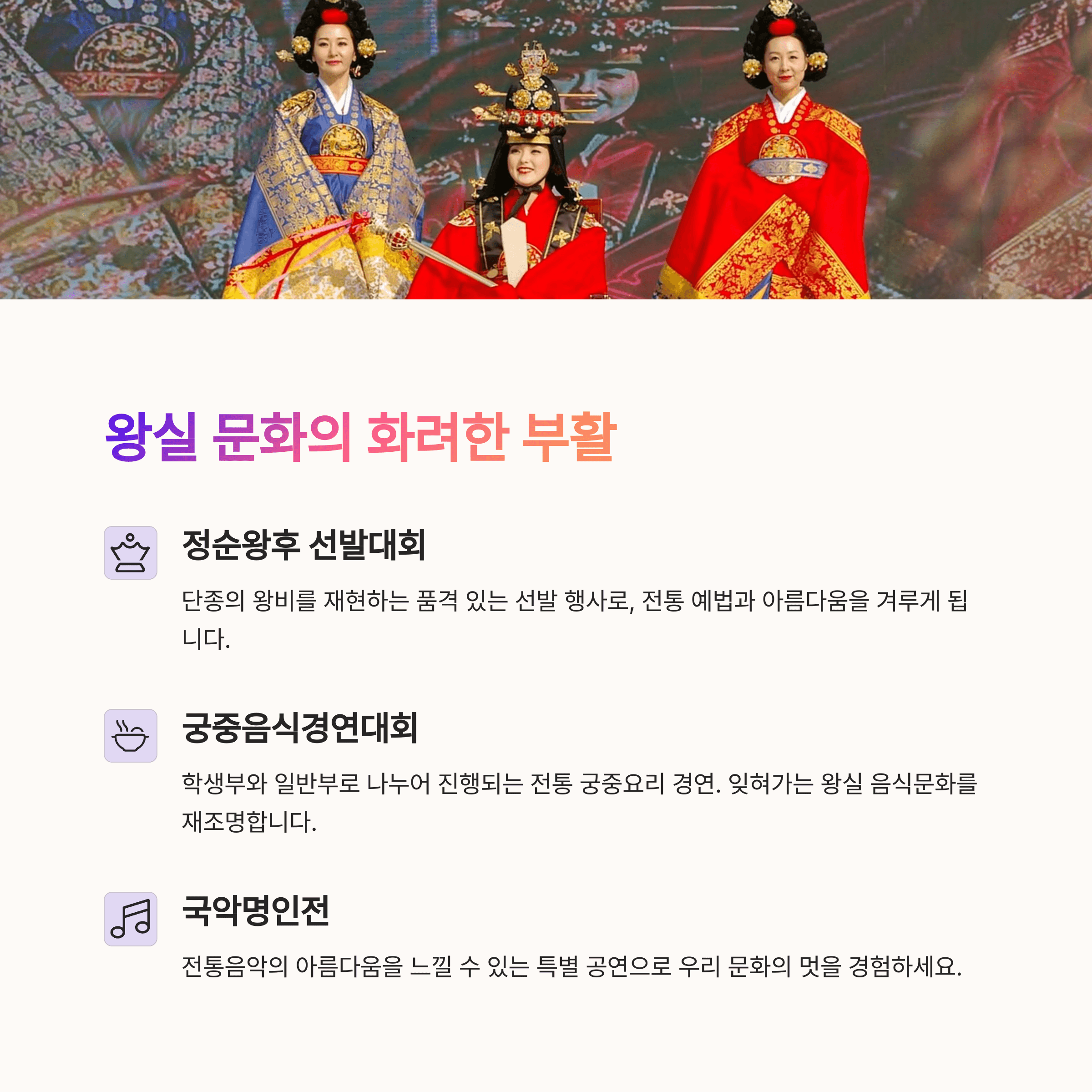 단종문화제는 단순한 축제가 아닌 역사적 메시지를 전달하는 의미 있는 행사입니다.