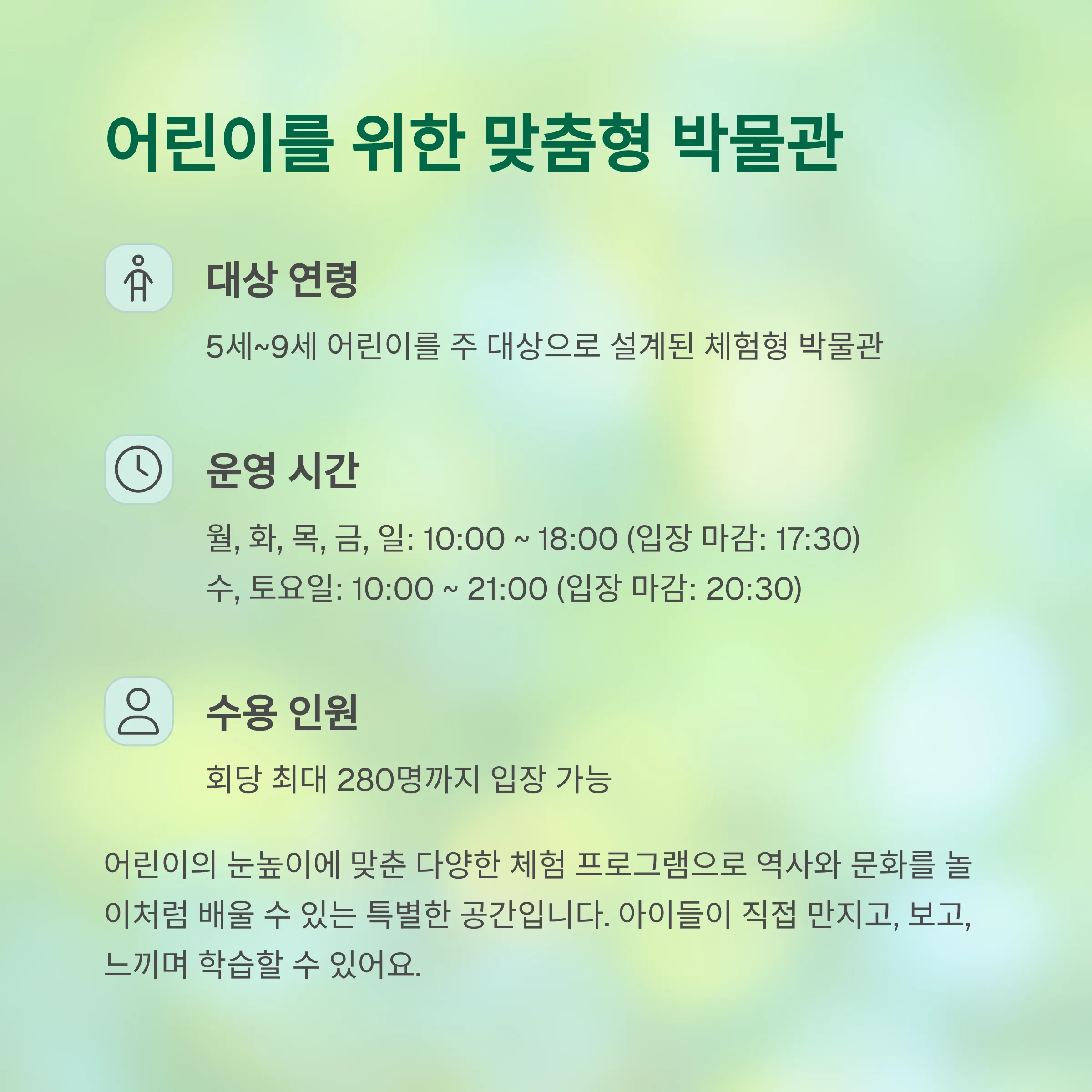 국립중앙박물관 어린이박물관 주요 정보 한눈에 보기
