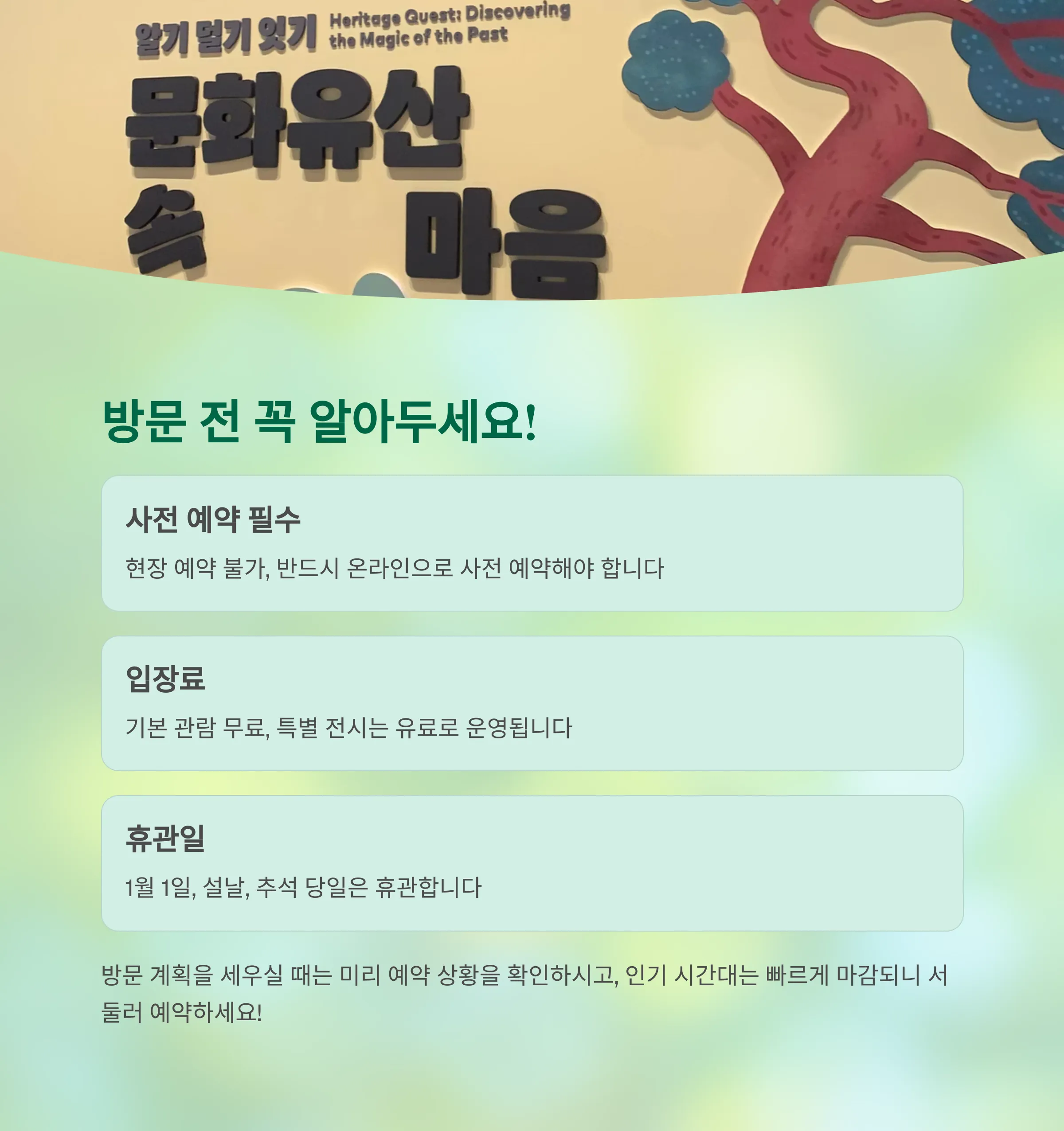 사전 예약제도를 잘 활용하면 쾌적하고 안전한 방문이 가능합니다.