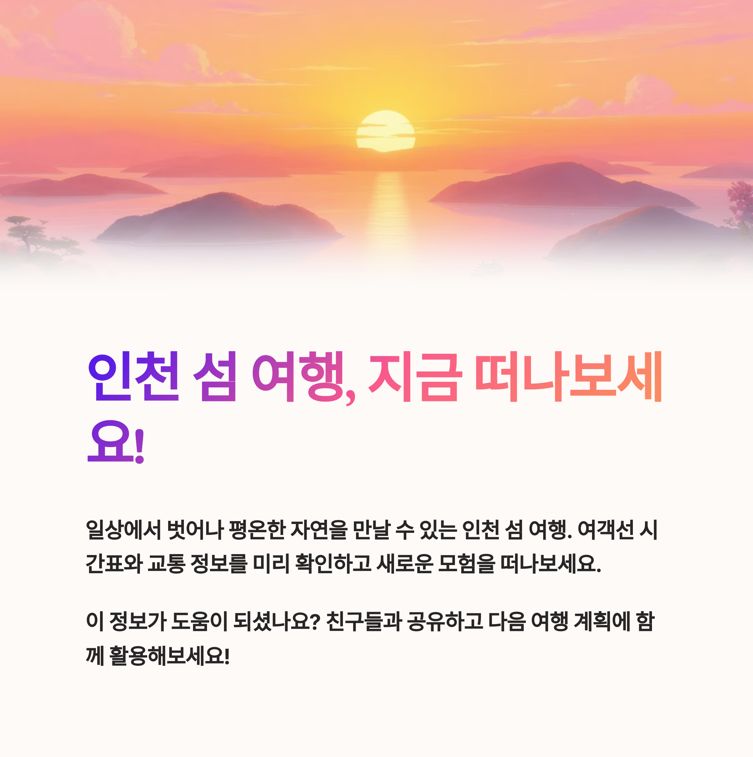 인천 섬 여행은 우리의 일상에서 벗어나 평온한 자연을 만날 수 있는 기회입니다.