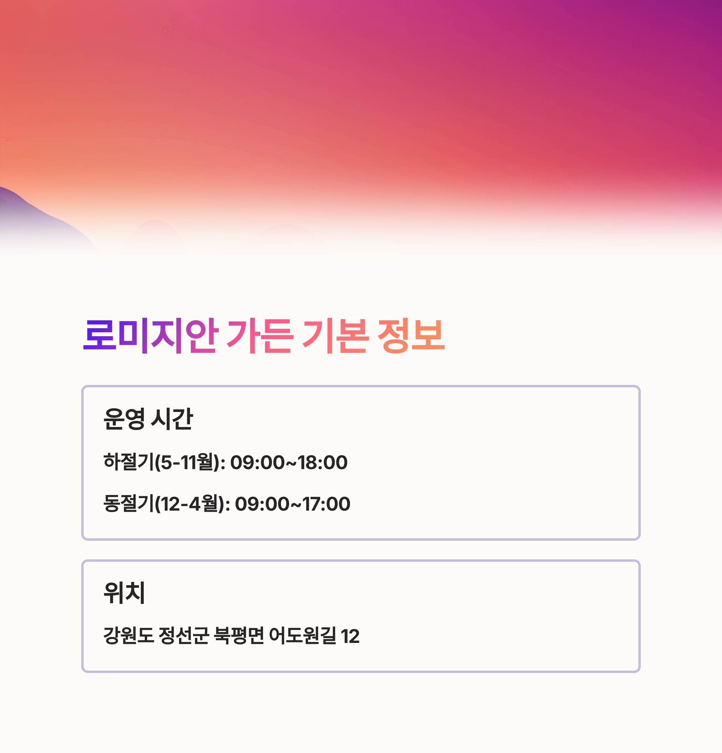 이번 여름엔 정선 로미지안 가든으로 떠나, 힐링의 진정한 의미를 느껴보시기 바랍니다.
