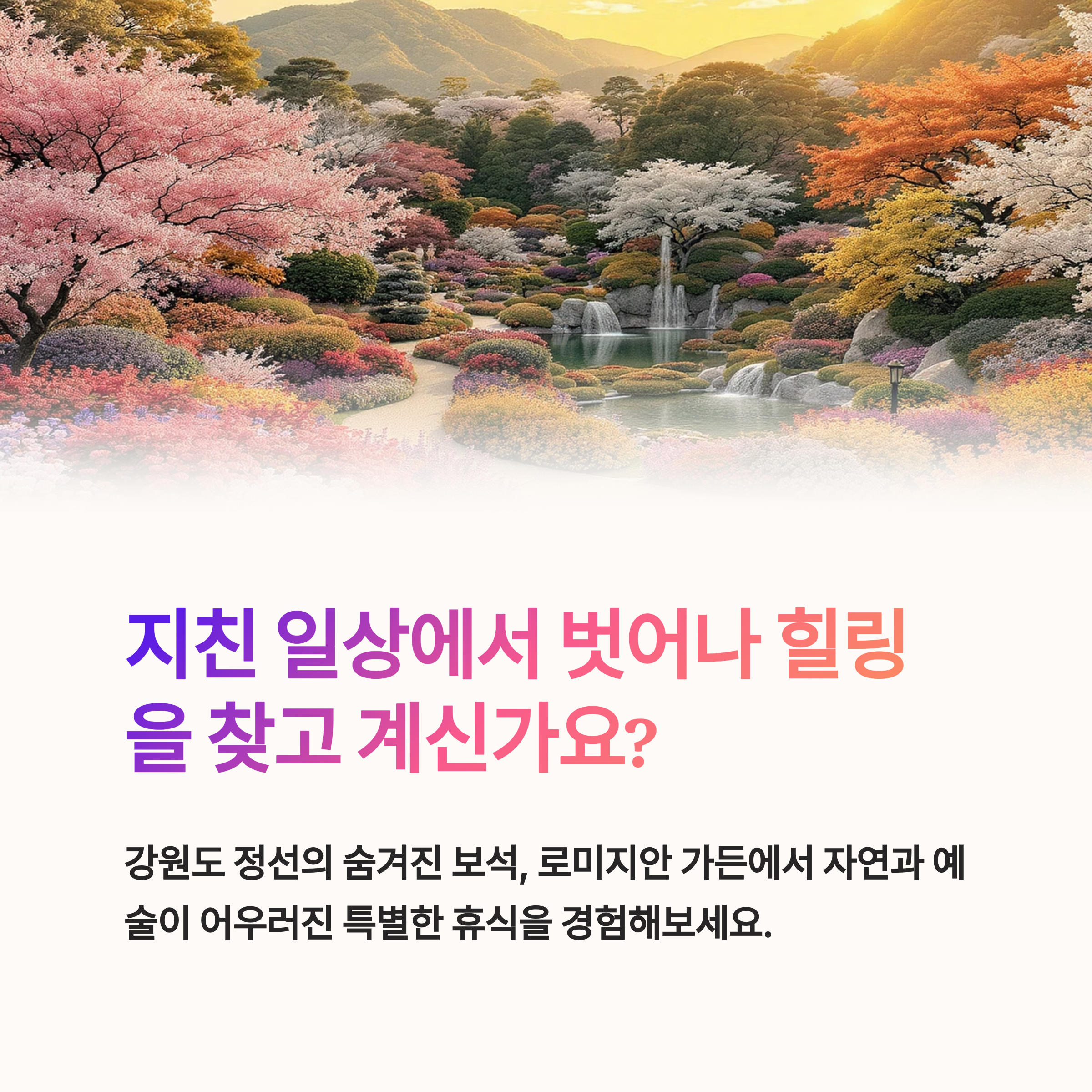 정선 로미지안 가든은 자연과 예술이 함께하는 공간으로, 완벽한 힐링 여행지입니다.