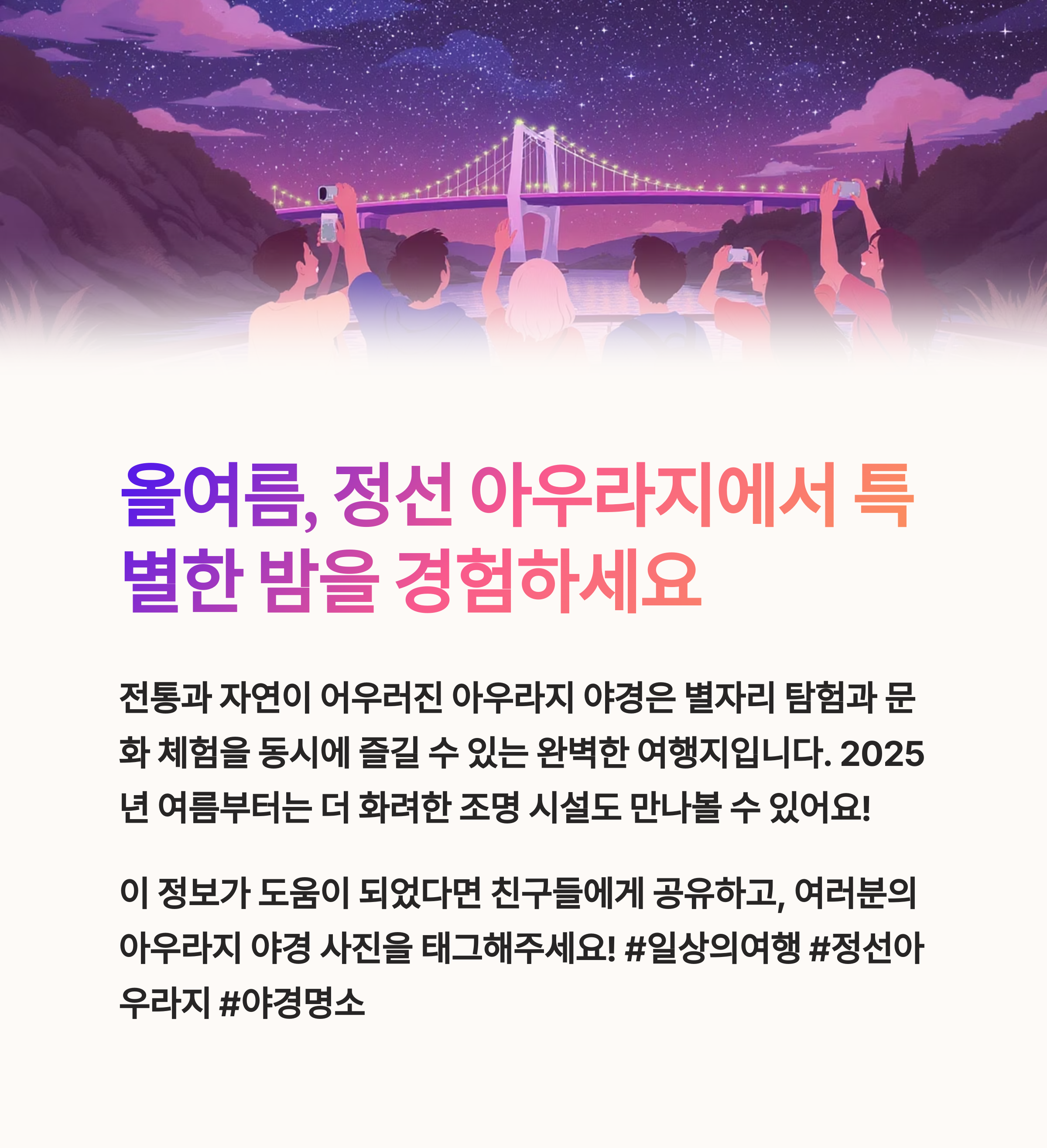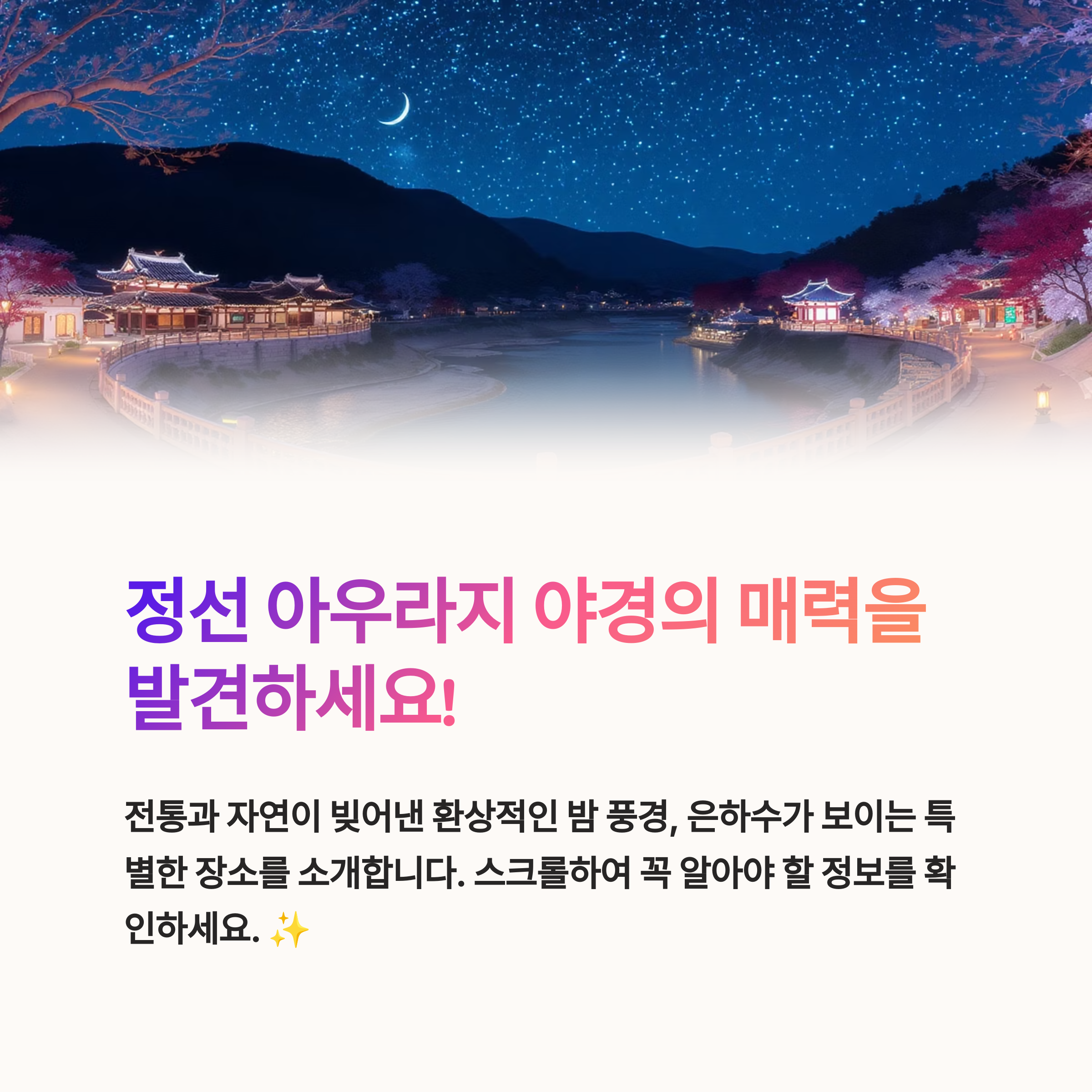 오늘은 요즘 화제가 되고 있는 정선 아우라지 야경 명소를 자세히 소개해 드릴게요.