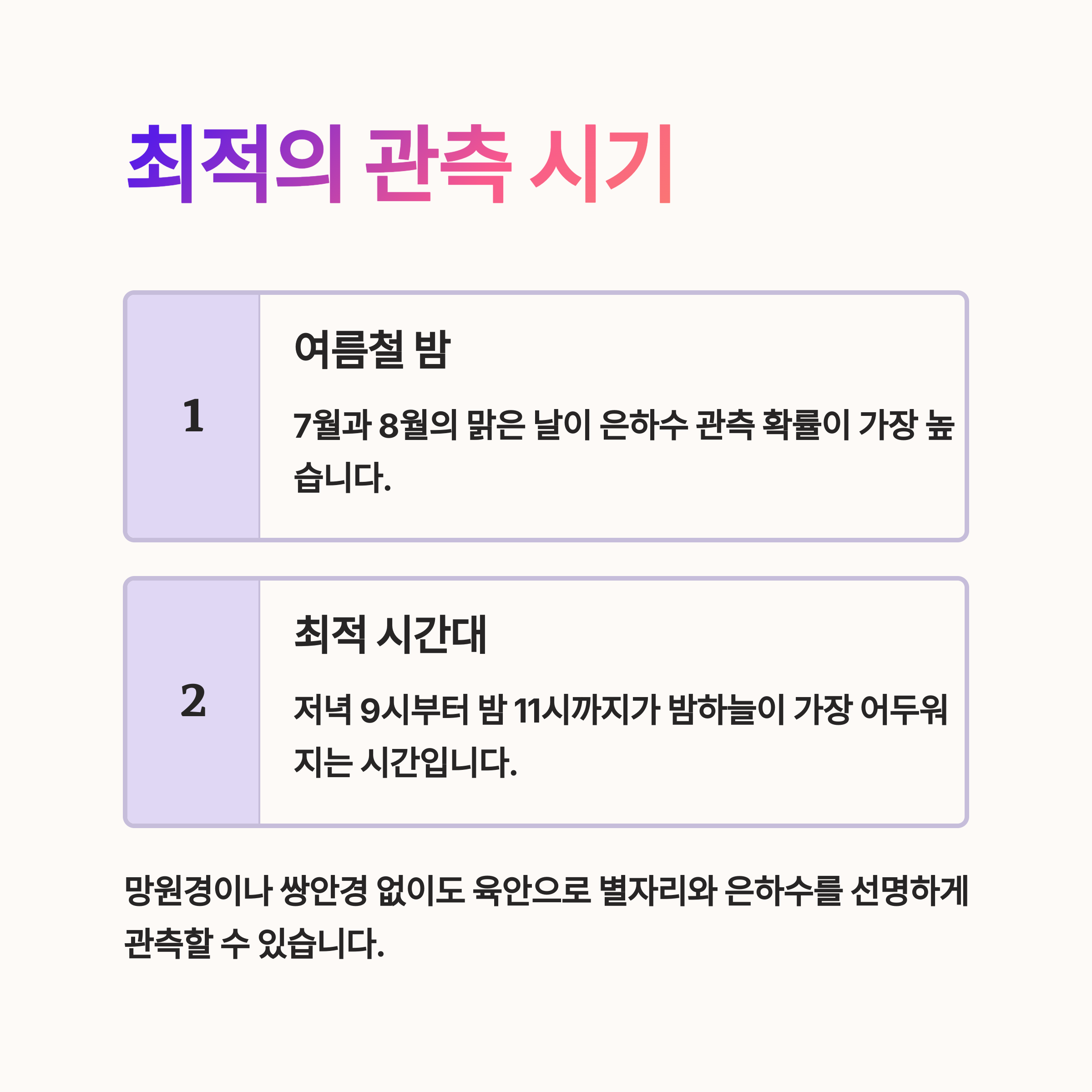 | Q. 정선 아우라지에서 은하수를 관측하기 가장 좋은 시기는 언제인가요? |