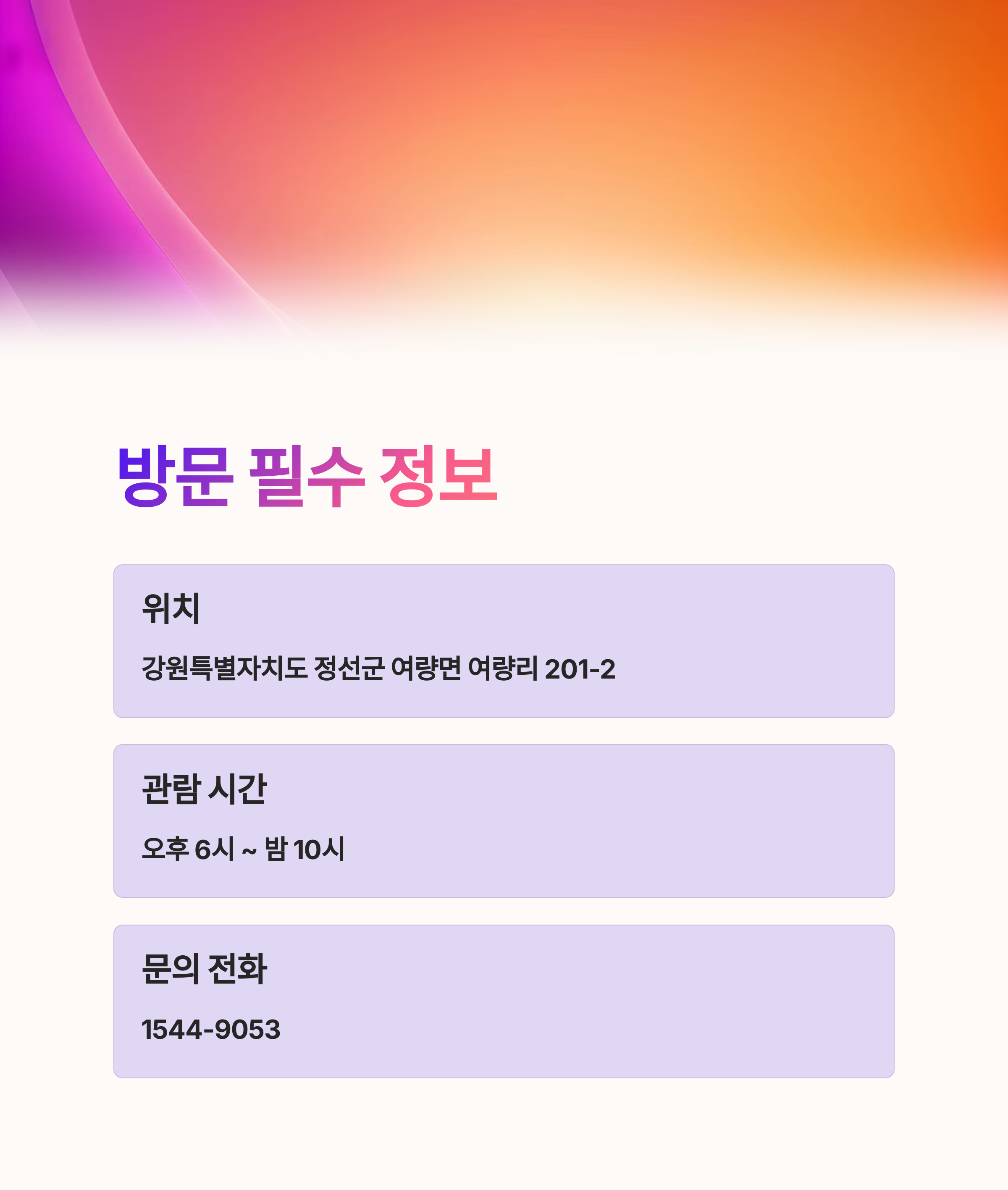 | 주차장 위치 | 강원특별자치도 정선군 여량면 여량리 199 |