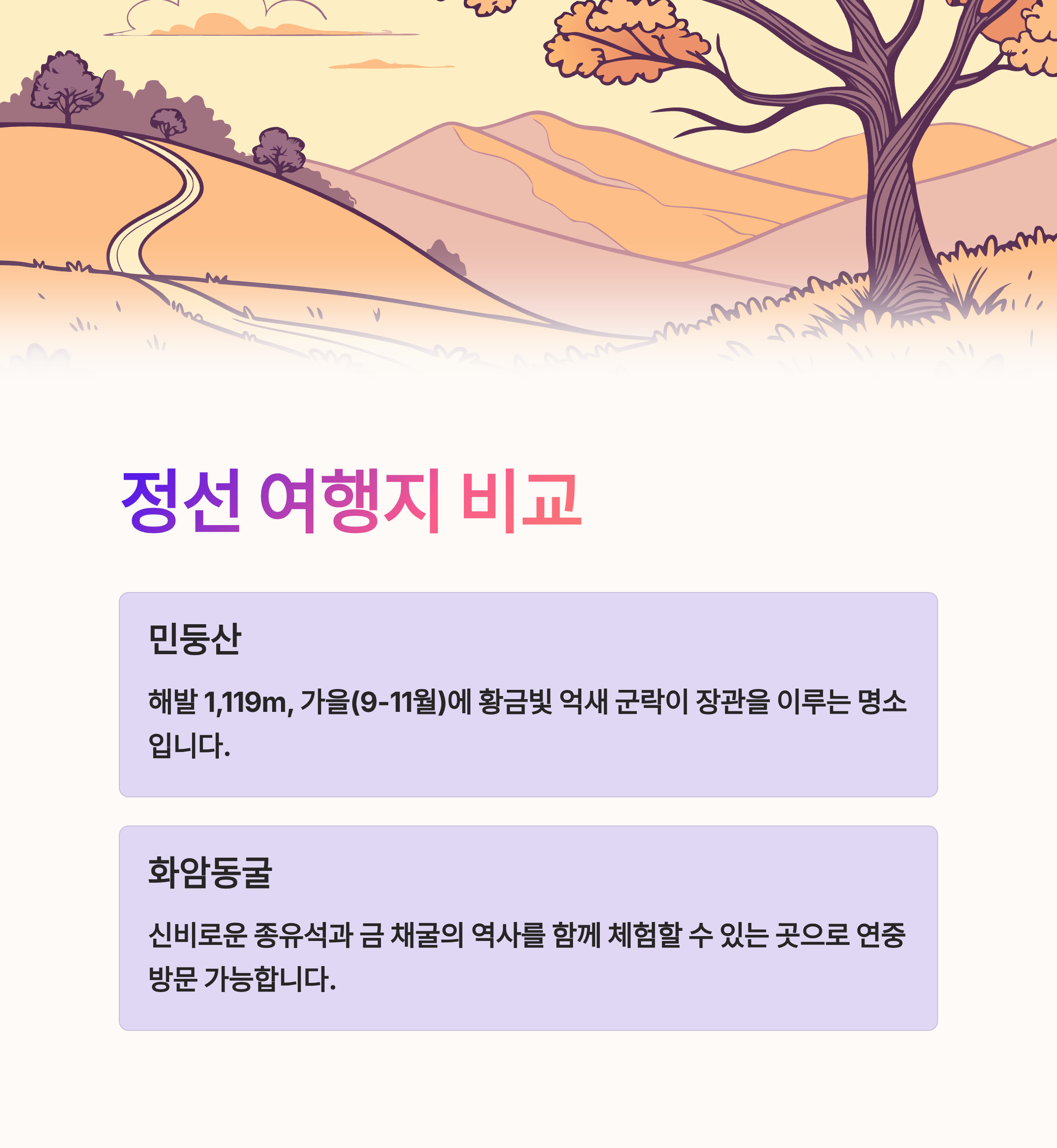 정선 주요 여행지 비교표