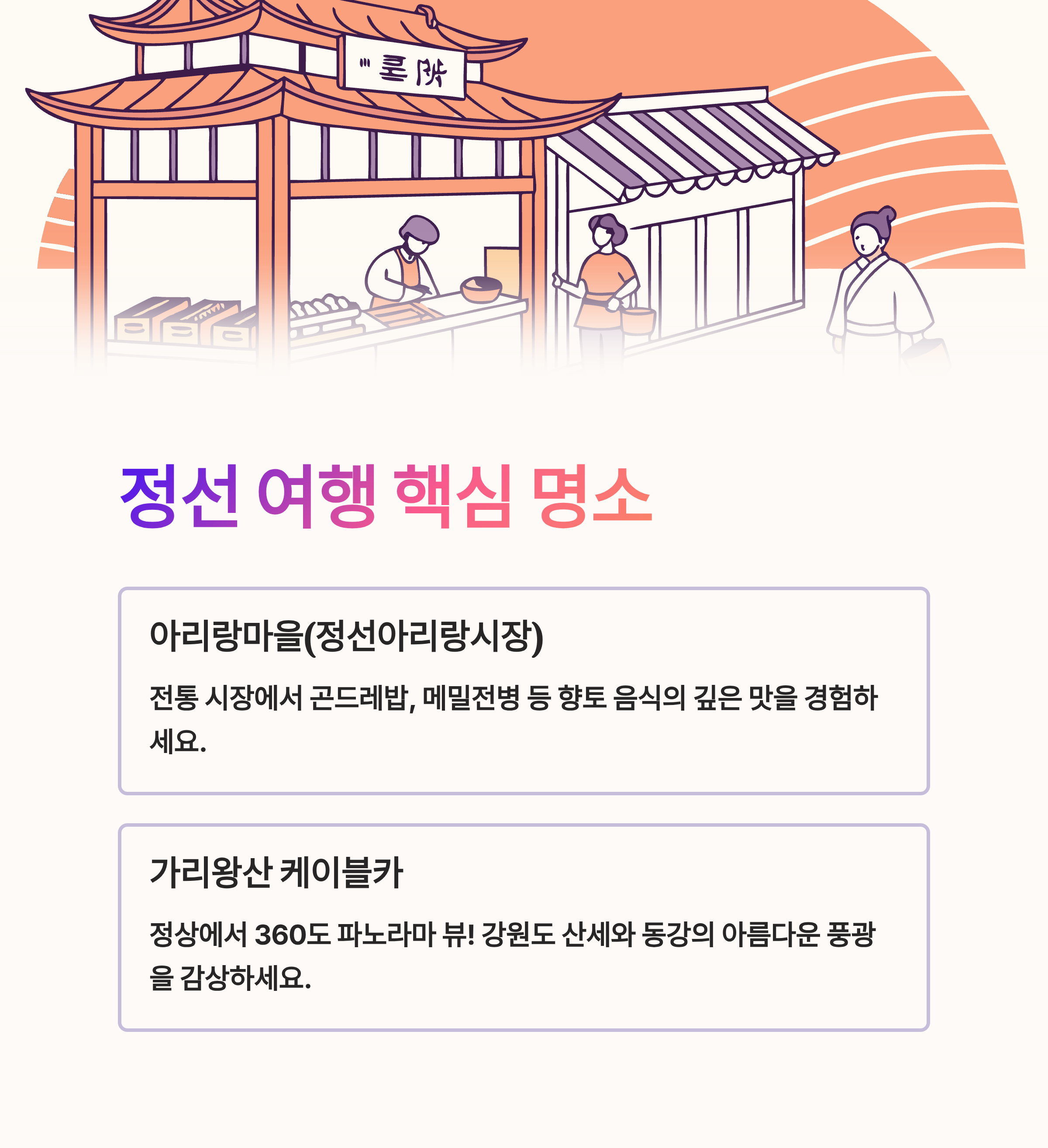 정선은 전통 문화와 자연이 어우러진 강원도의 대표적인 여행지로,