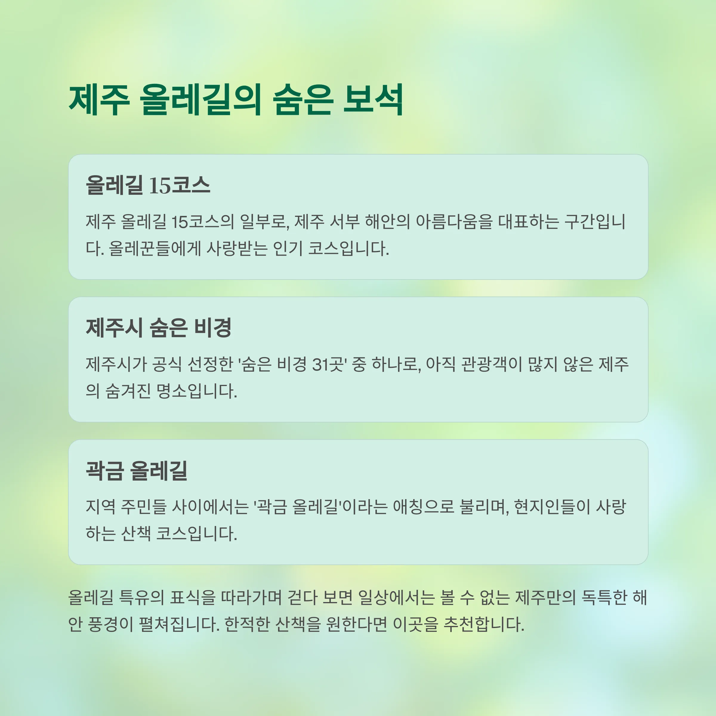 그래서 오늘은 제주 애월에서 걷기 좋은 길에 대해 알아보려 합니다.