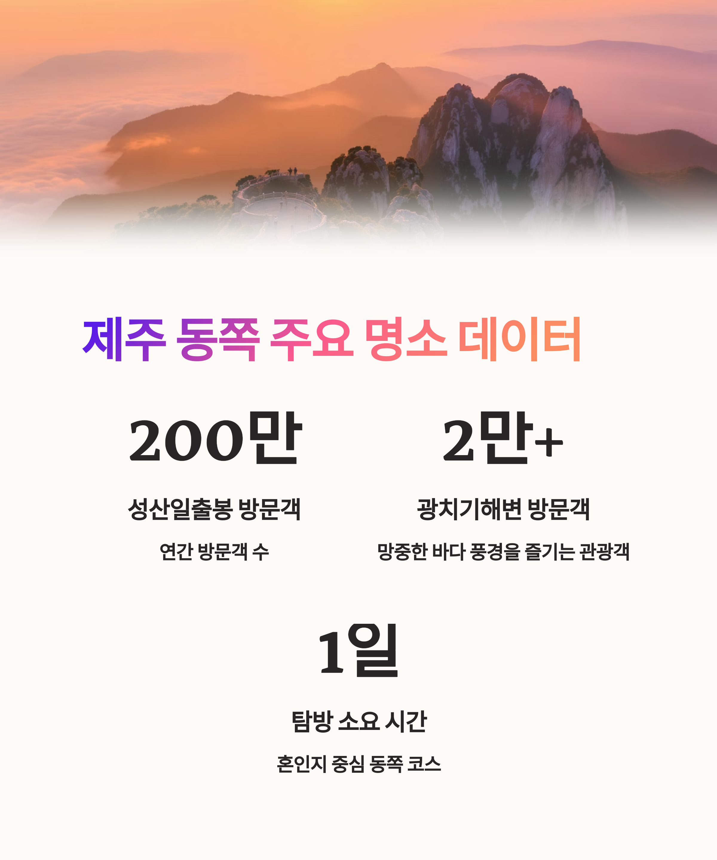 | 성산일출봉 | 약 200만 명 | 일출 뷰가 뛰어난 정상 |