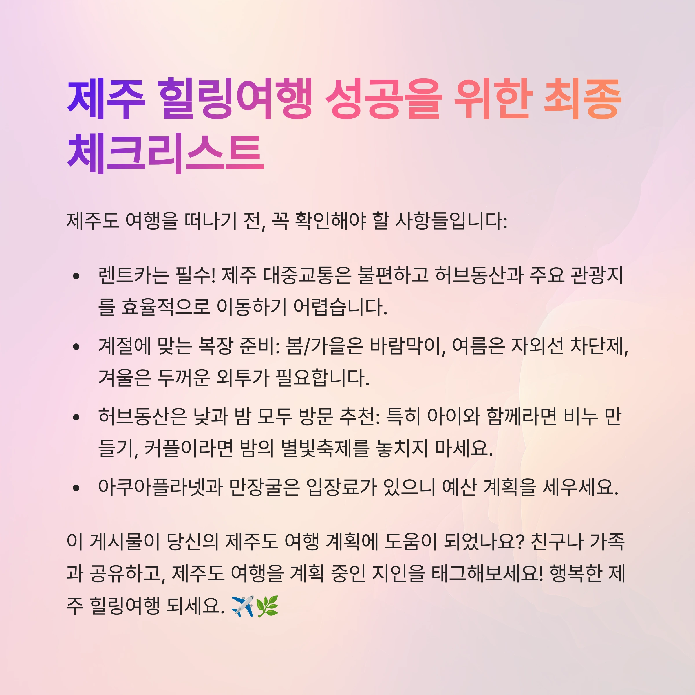 제주도 여행을 준비하면서, 효과적인 일정 계획과 힐링 명소를 찾으려다 보면 의외로 많은 시간과 노력이 필요하죠.