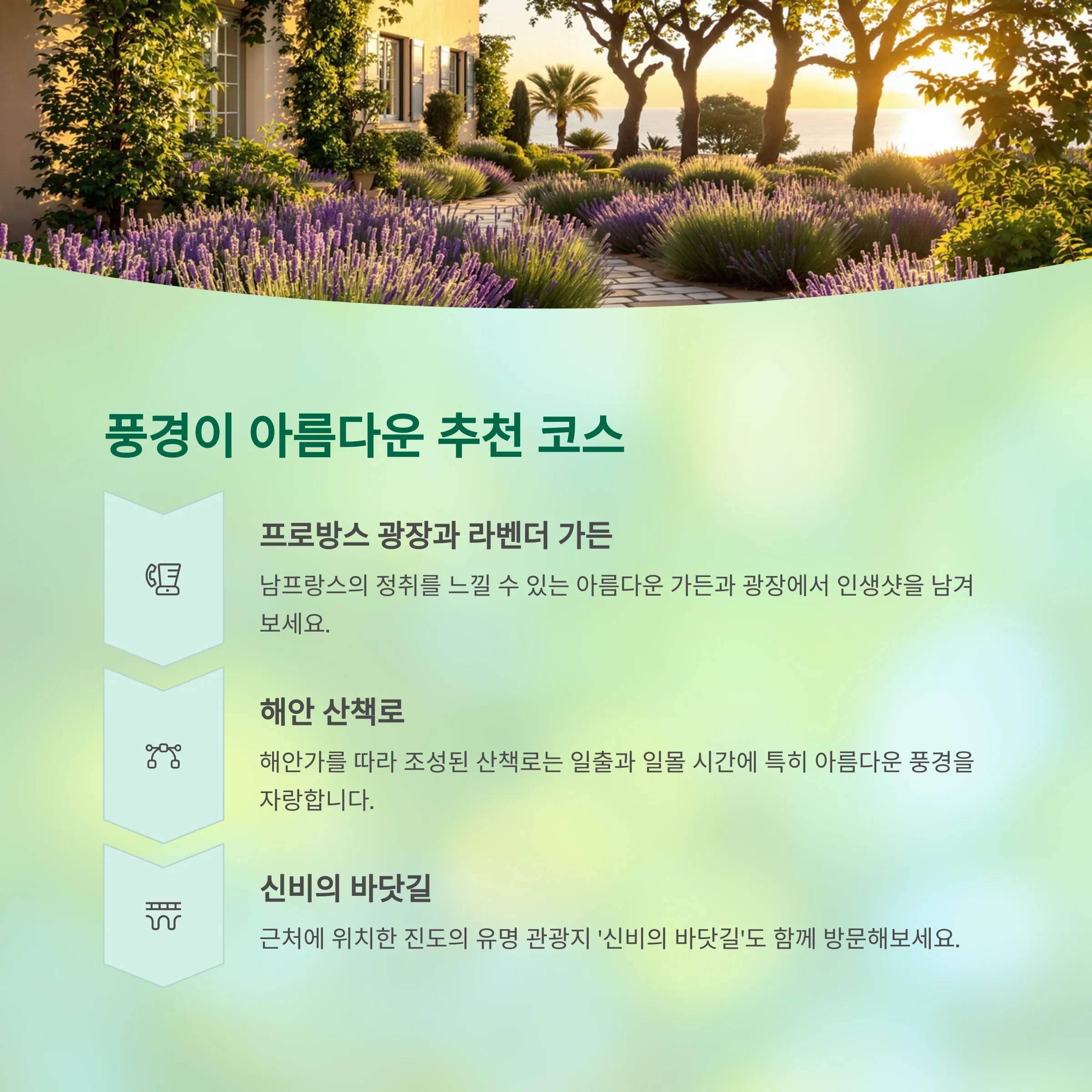 프로방스 광장과 라벤더 가든은 사진 촬영이나 산책에 완벽합니다.