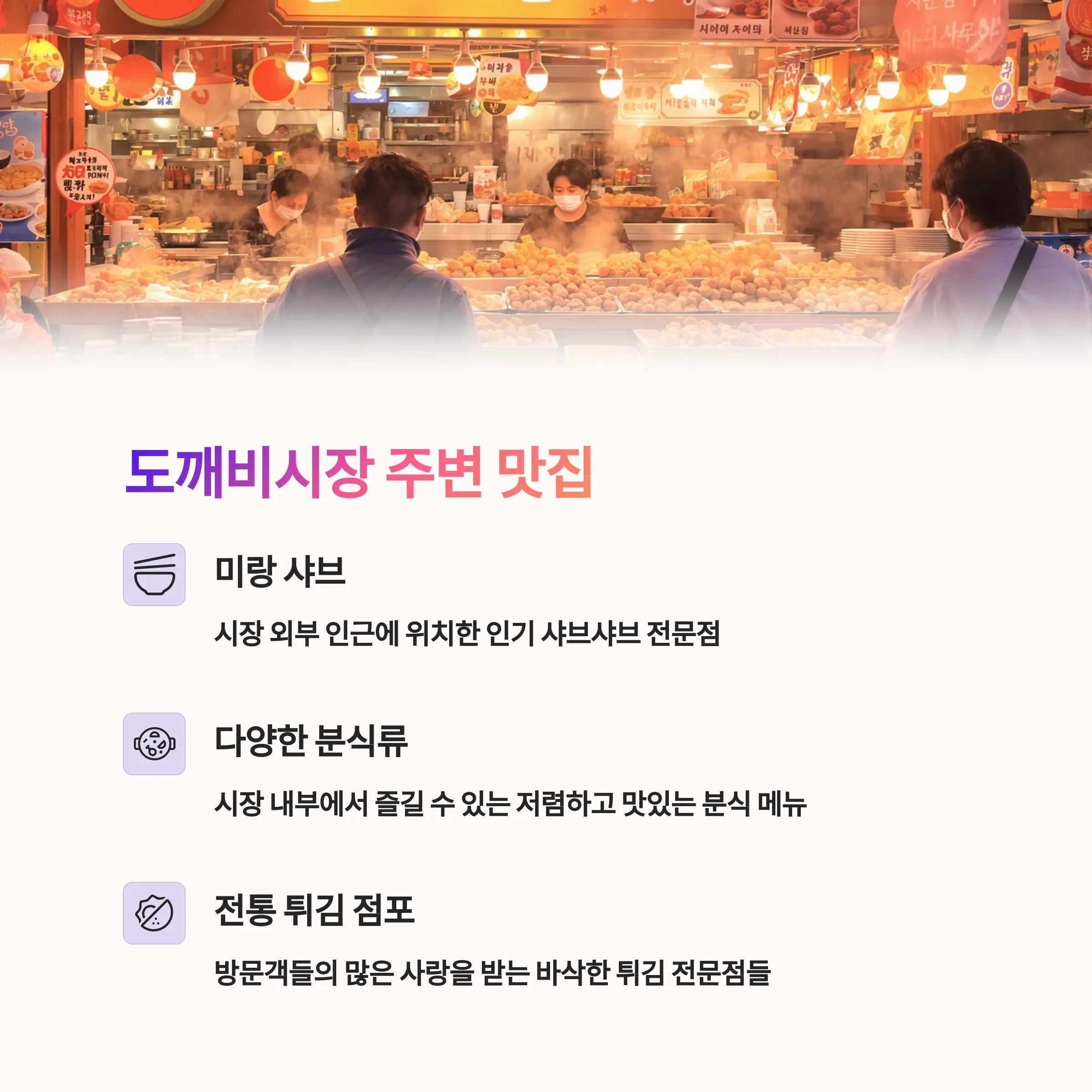 주차장 정보와 시장 내 추천 장소 정보까지 모두 준비했으니, 알찐 방문을 설계하실 수 있을 것입니다.