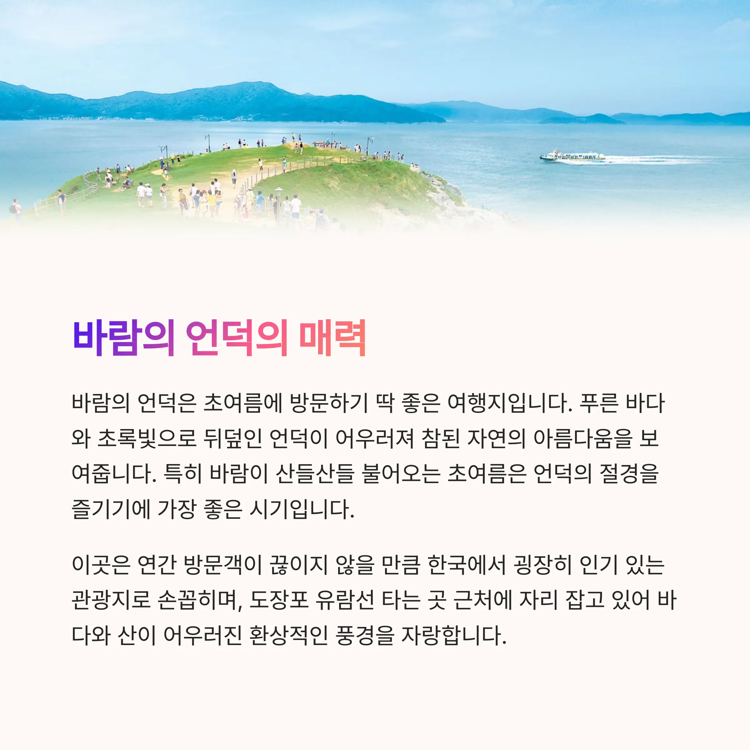 그래서 오늘은 여행님을 위해 거제도 바람의 언덕에서 즐길 수 있는 초여름 여행의 모든 정보를 준비했습니다.