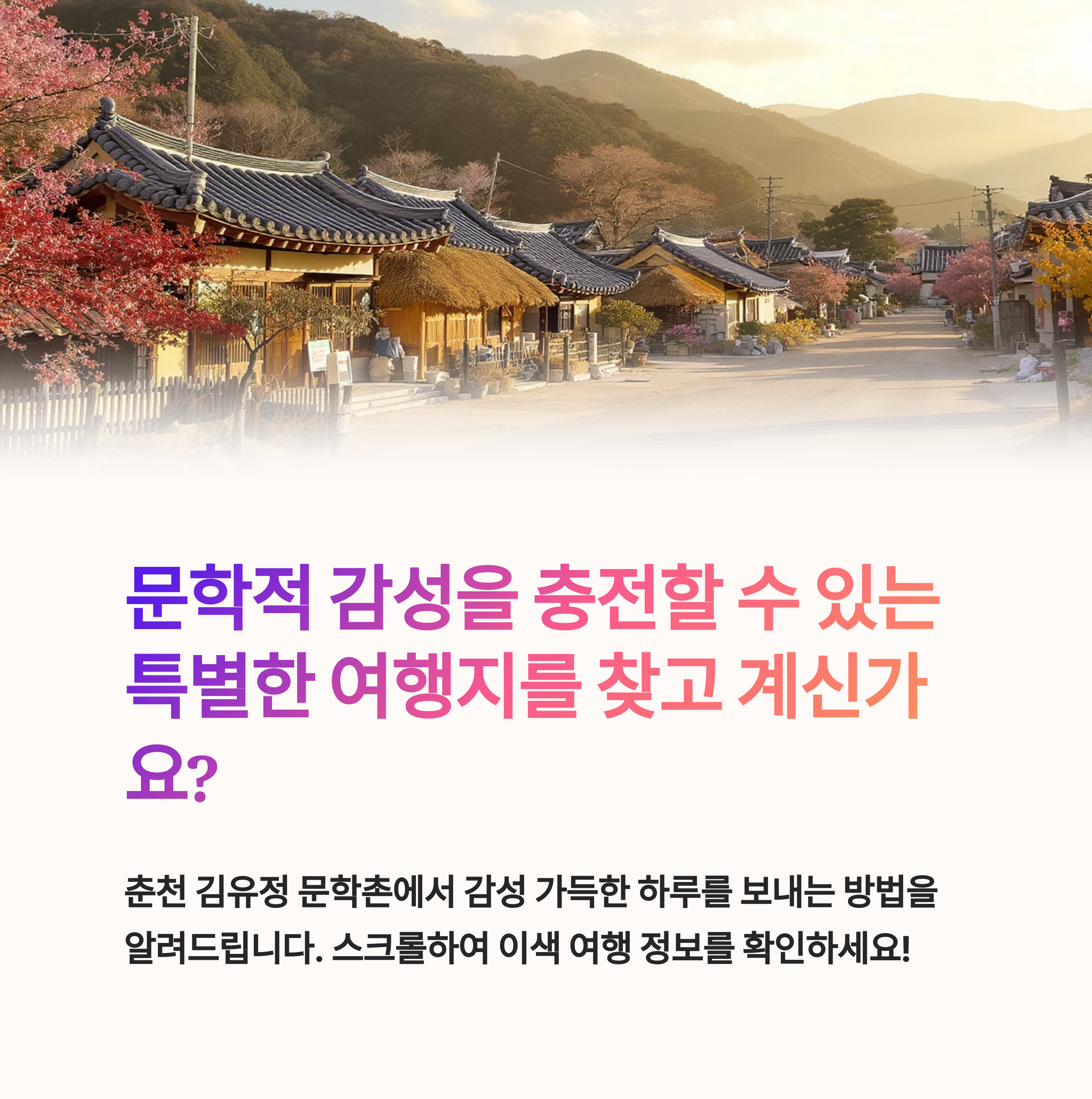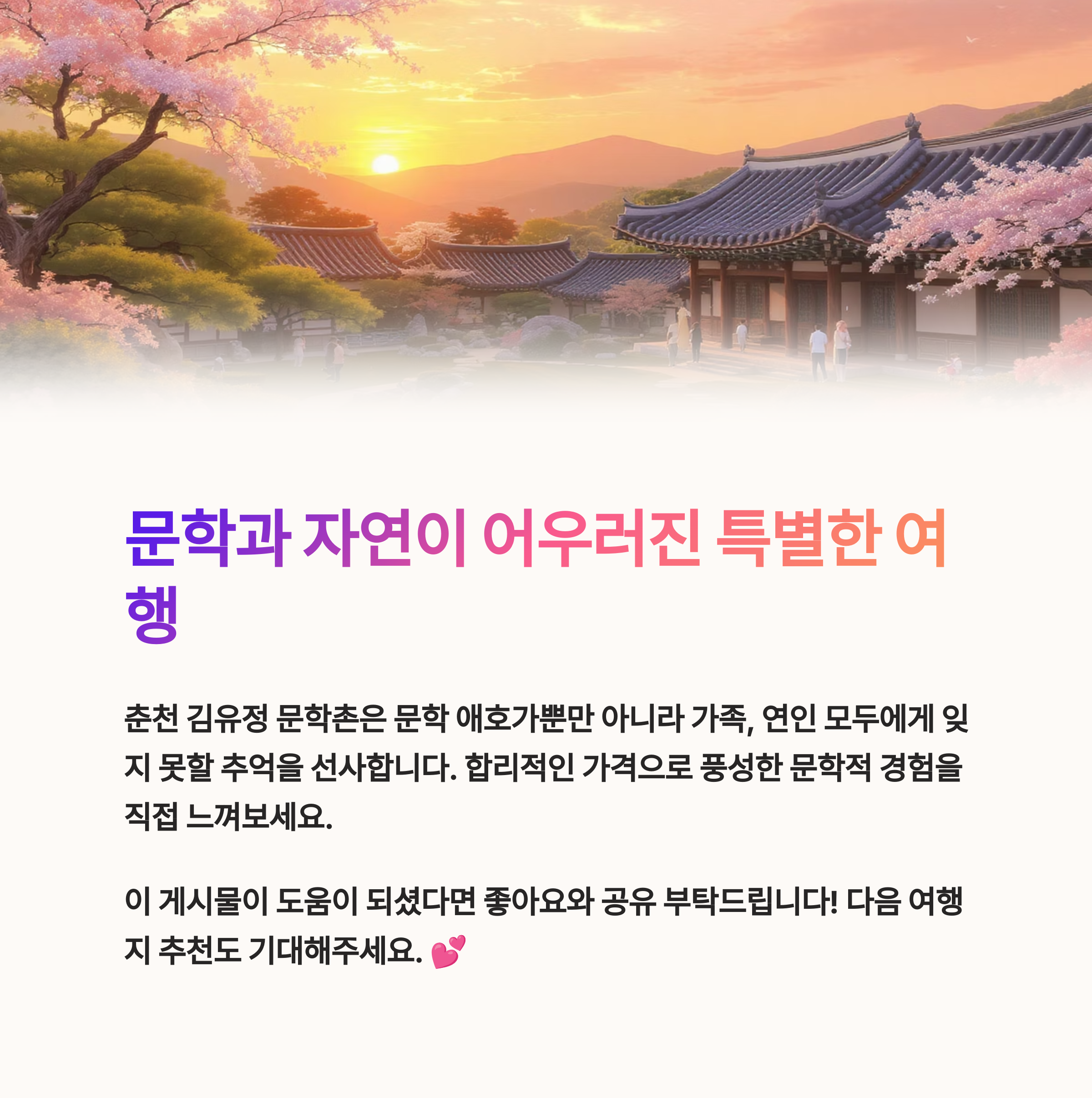 오늘은 춘천 김유정 문학촌에서 감성을 충전하며 멋진 하루를 보낼 수 있는 정보를 준비했어요!