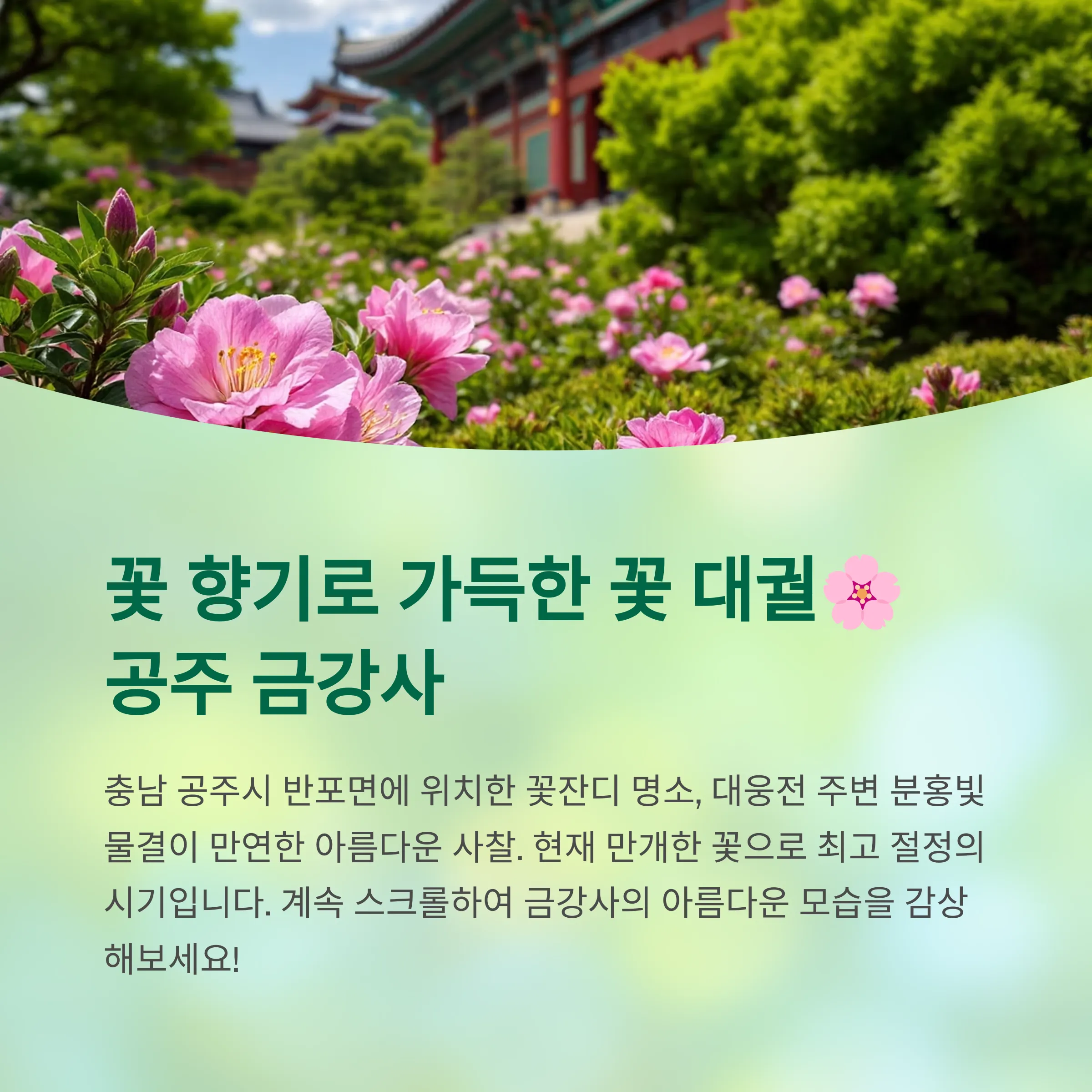 금강사의 매력은 단순히 꽃만이 아니라 자연과 전통을 조화롭게 느낄 수 있는 힐링 여행에 있습니다.
