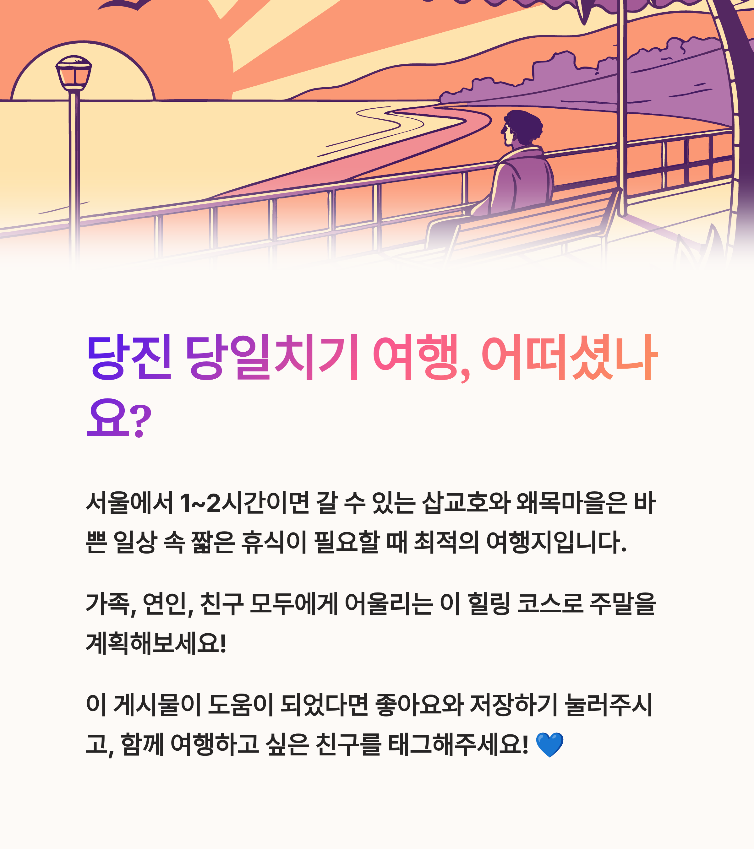 가족이든 연인이든 모두에게 어울리는 힐링 여행 코스로 활용해 보세요.