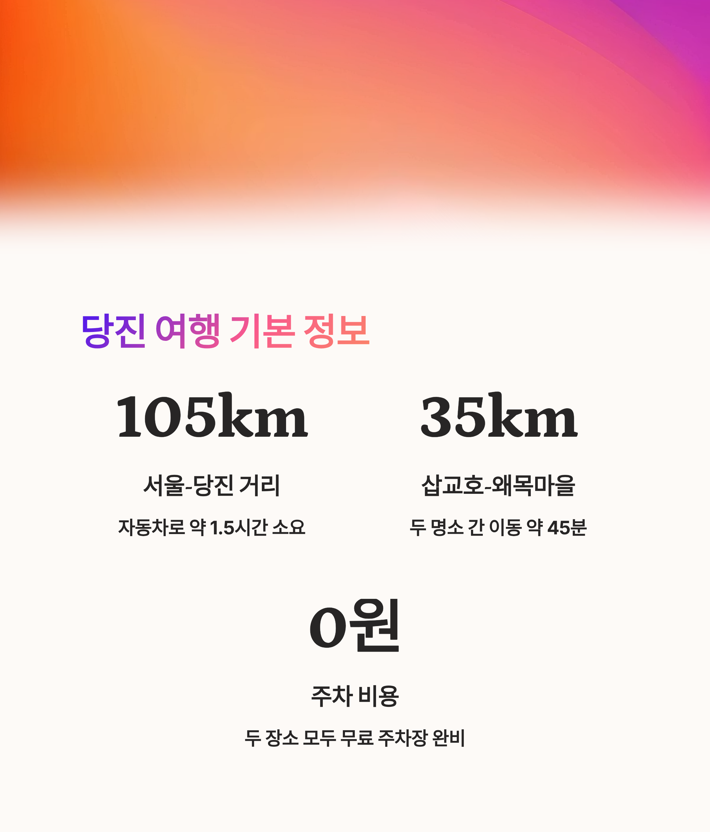 | 서울에서 당진까지 거리 | 약 105km (1~2시간 소요) |
