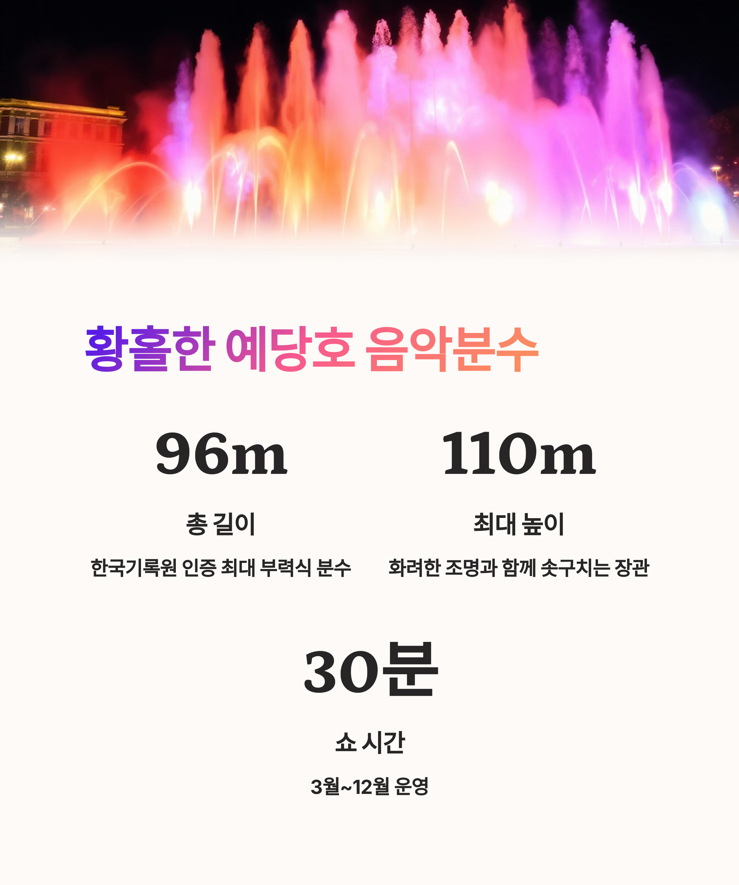 | 음악분수 총 길이 | 96m |