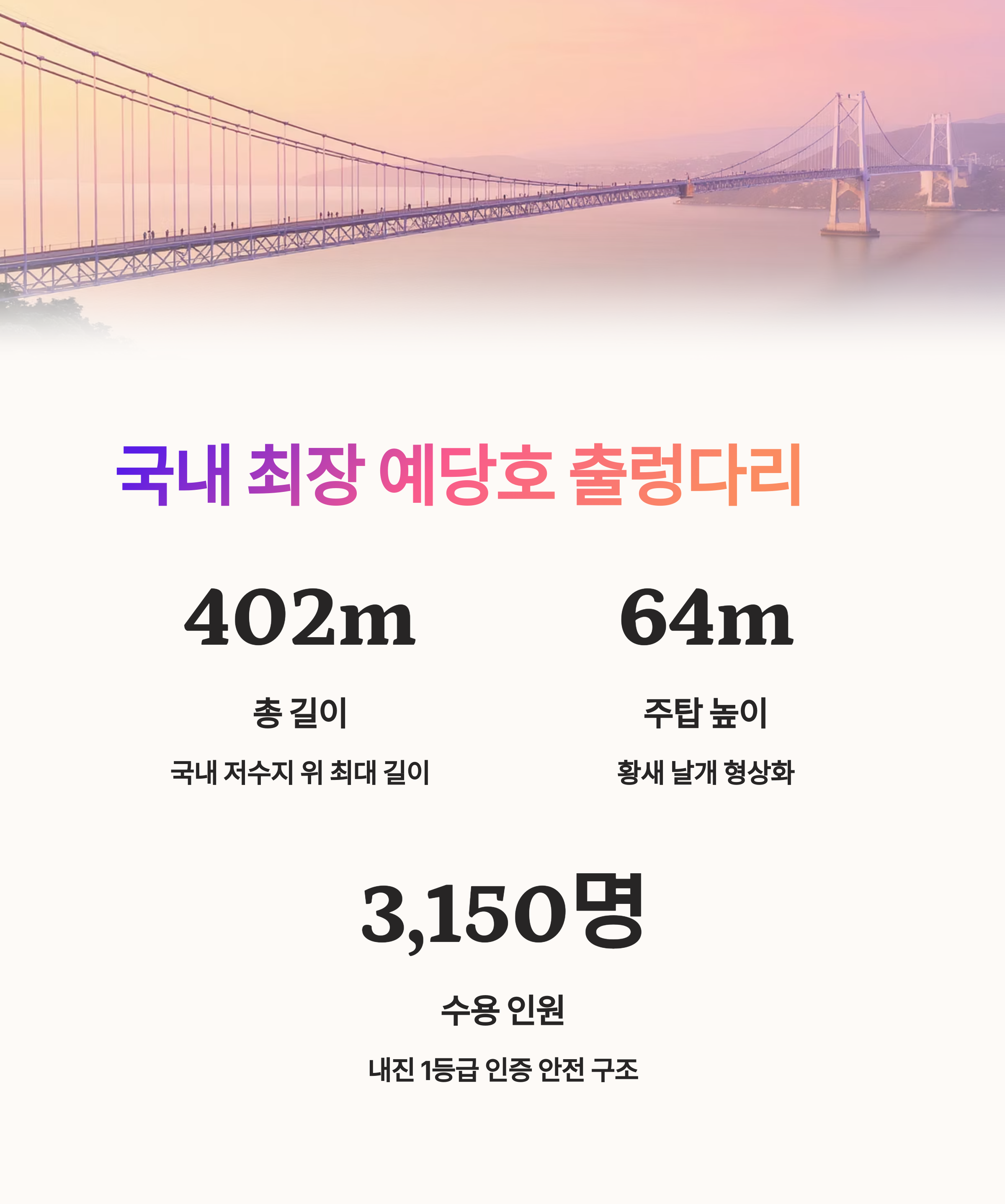 | 다리 주탑 높이 | 64m (황새 날개 조형) |