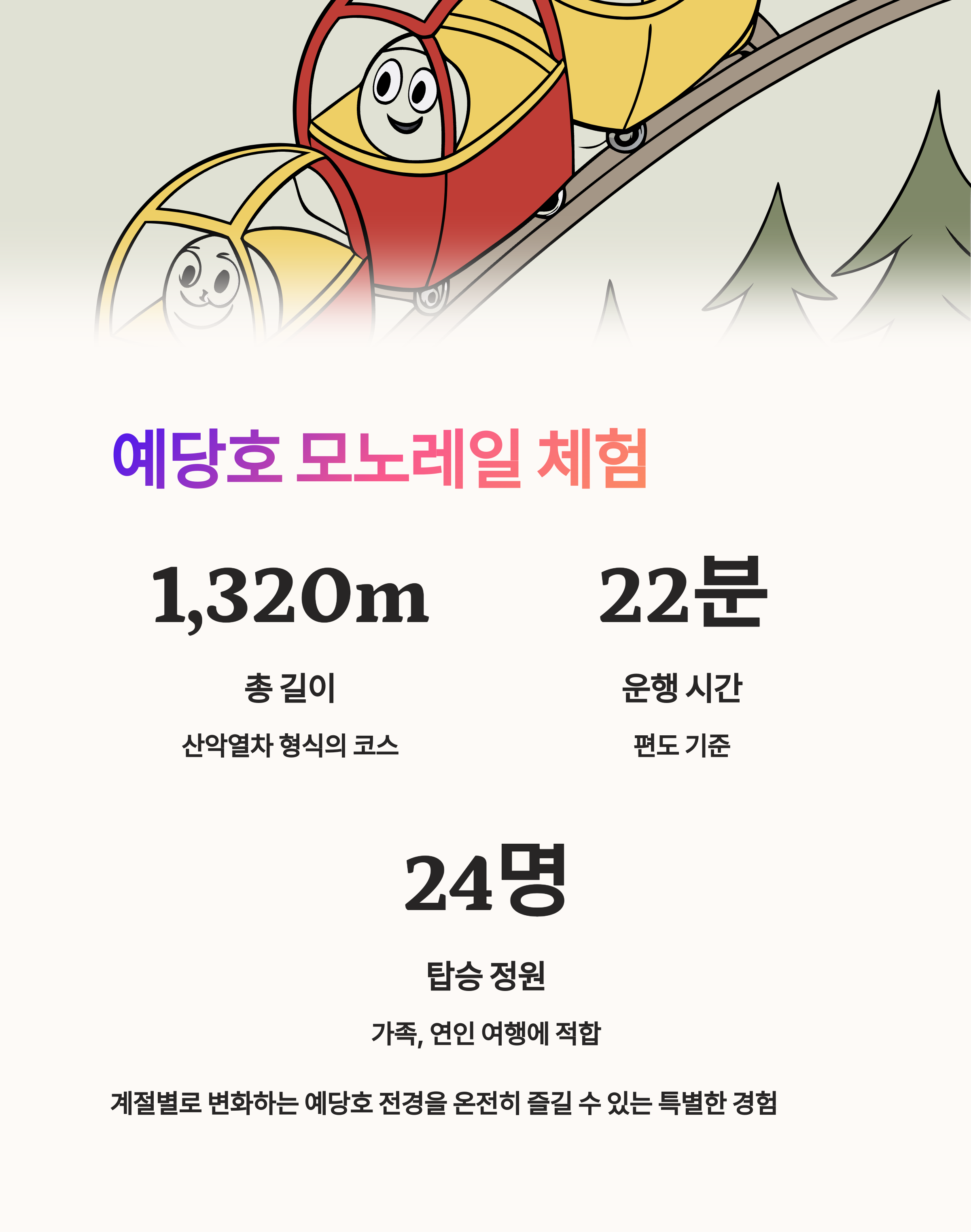 | Q. 예당호 모노레일은 어떤 코스로 운행되며 가족 여행에 적합한가요? |
