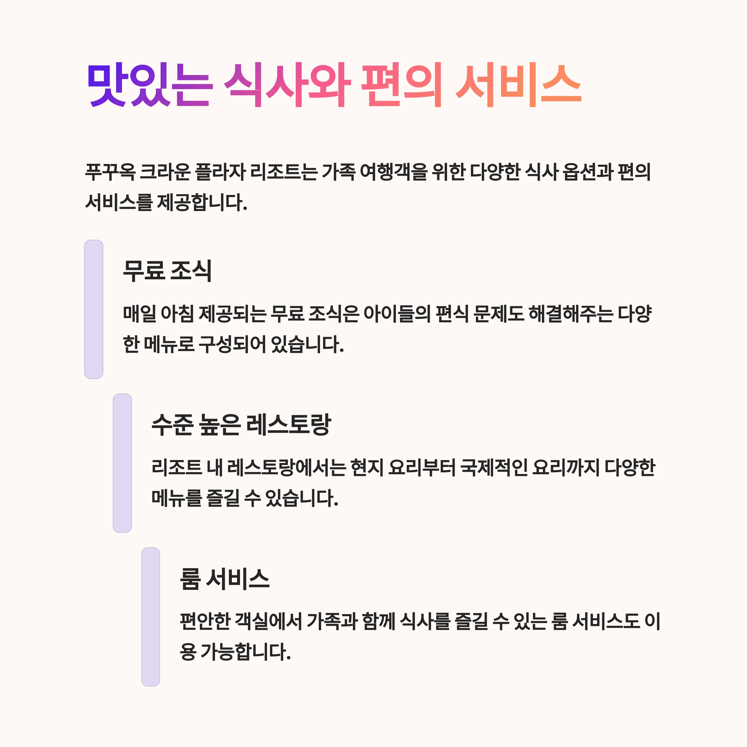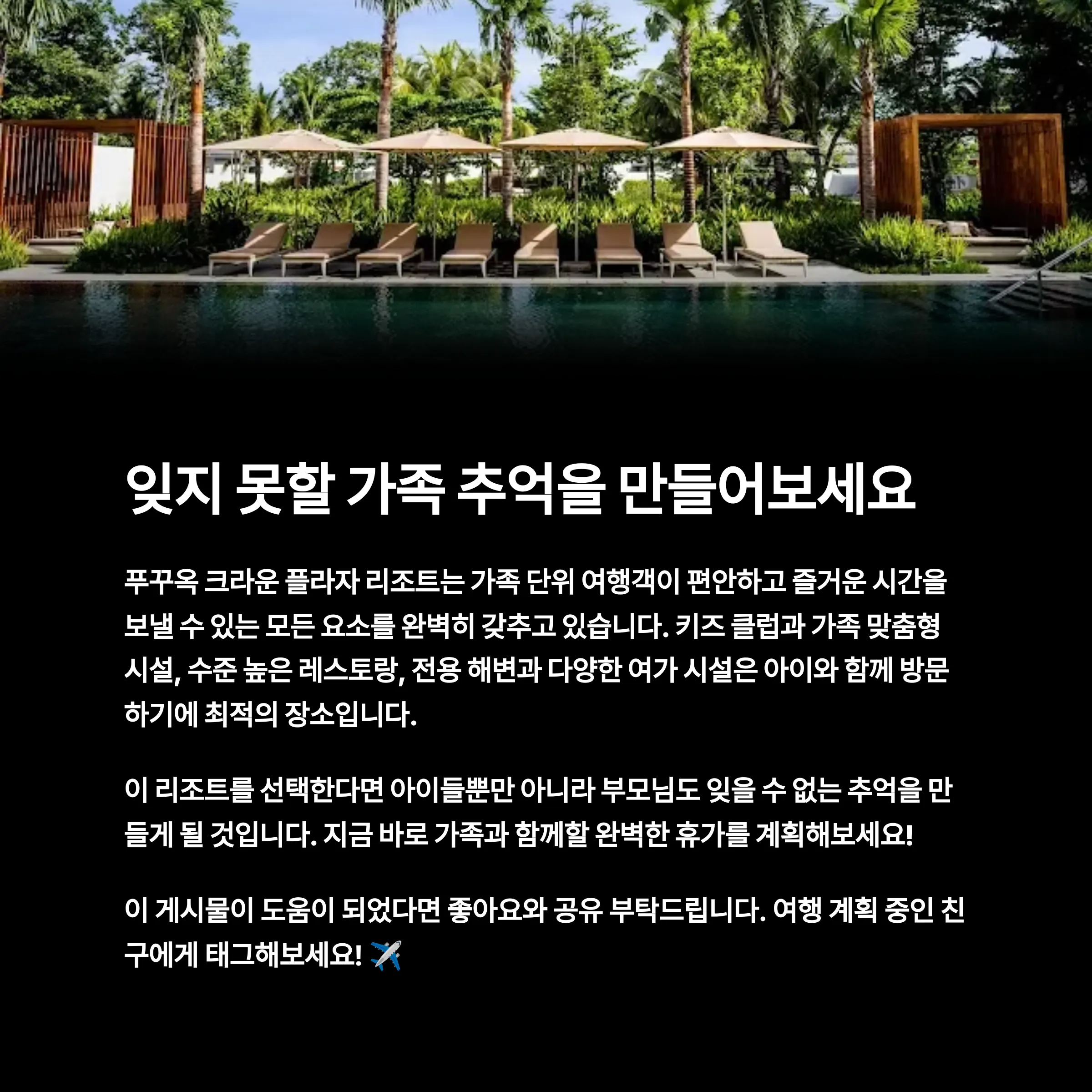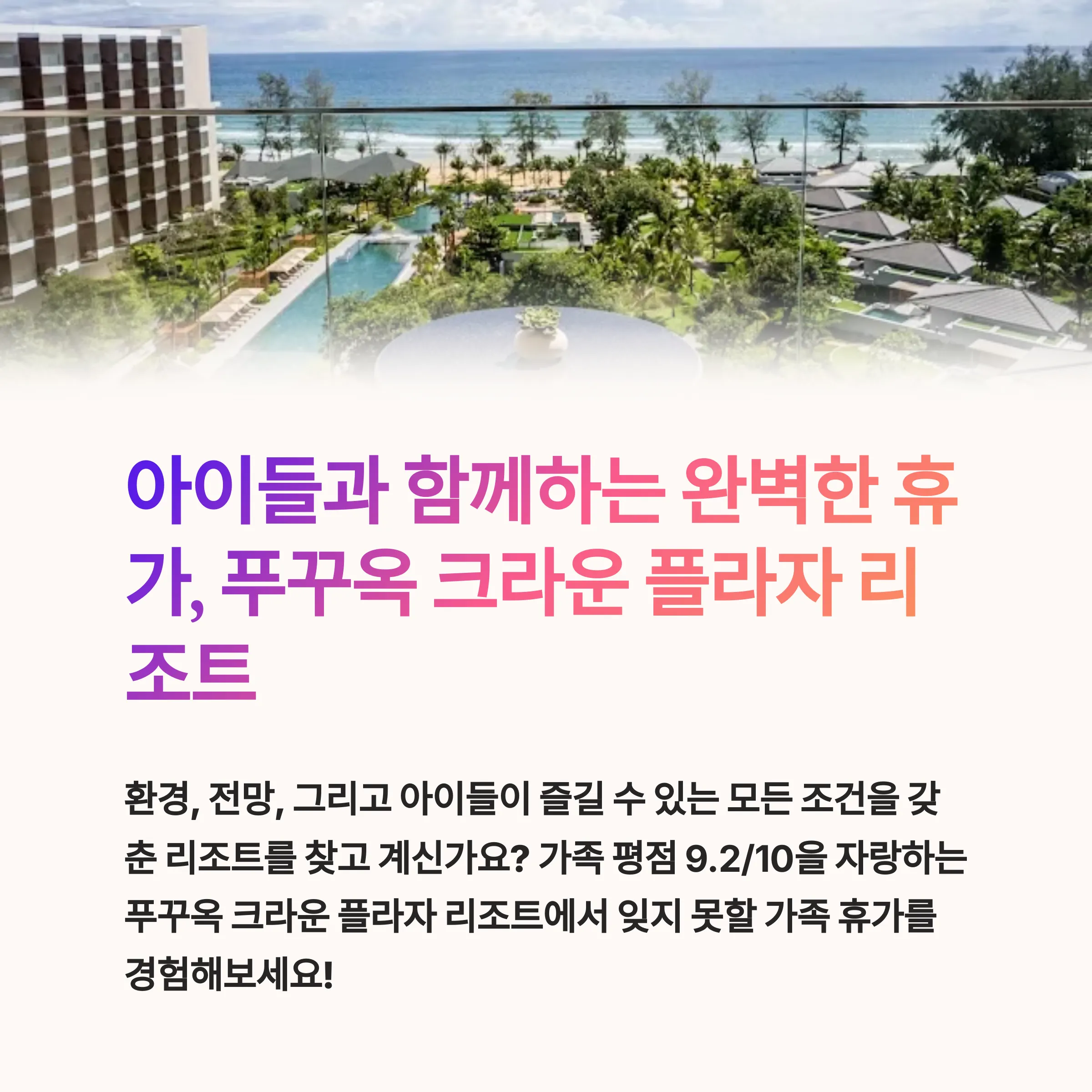 | Q. 아이와 함께 푸꾸옥 크라운 플라자 리조트를 추천하는 이유는 무엇인가요? |