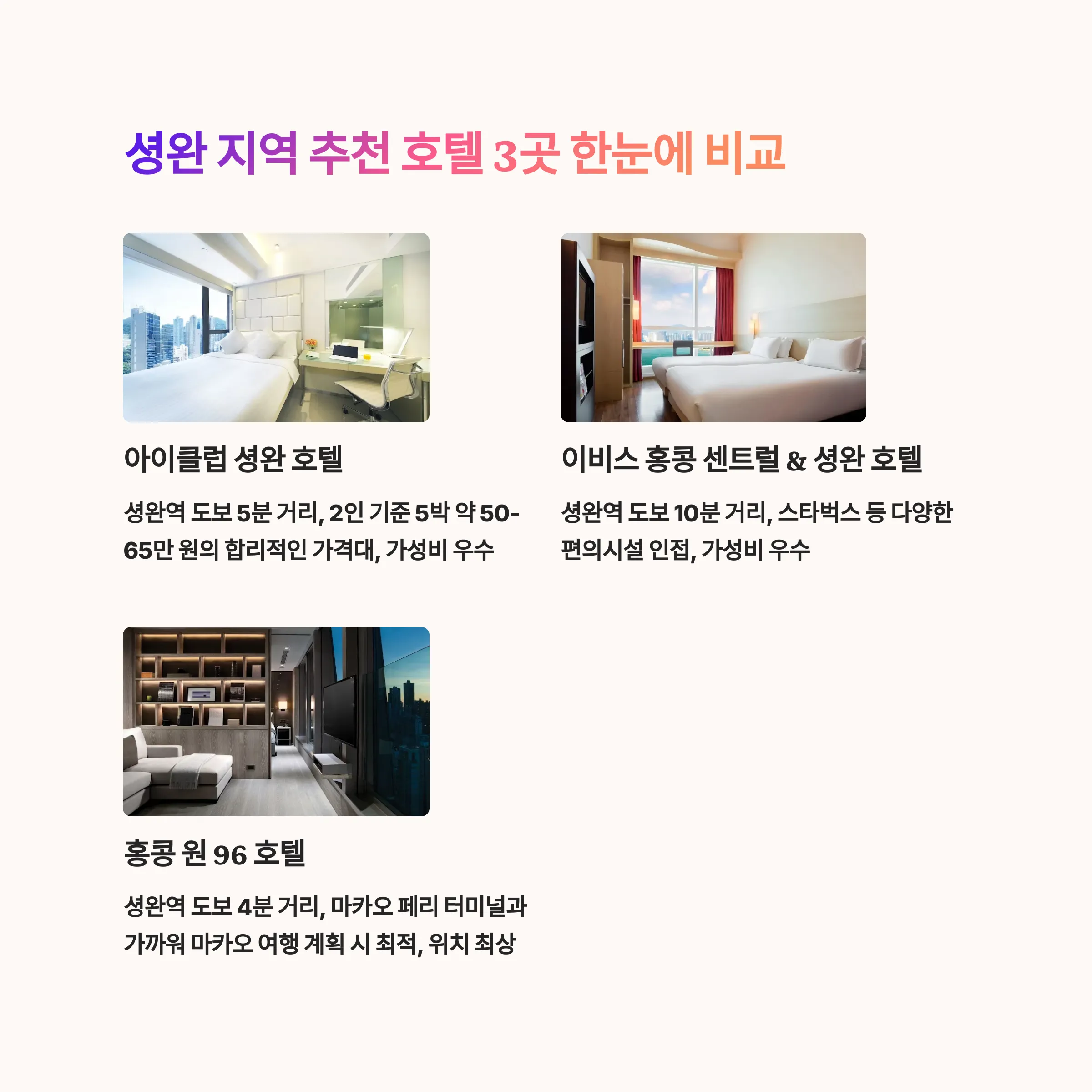 홍콩 셩완 추천 호텔 세 곳 비교