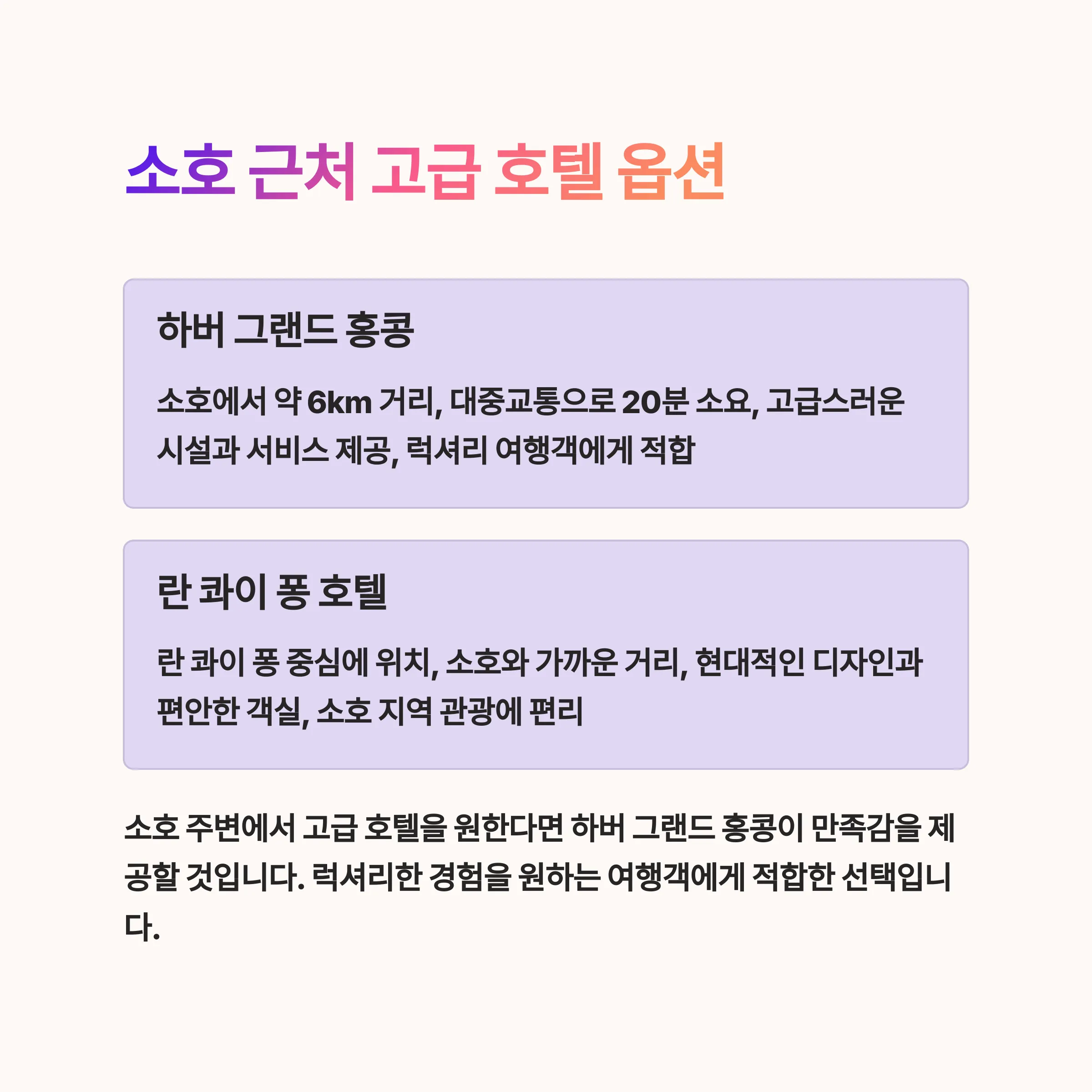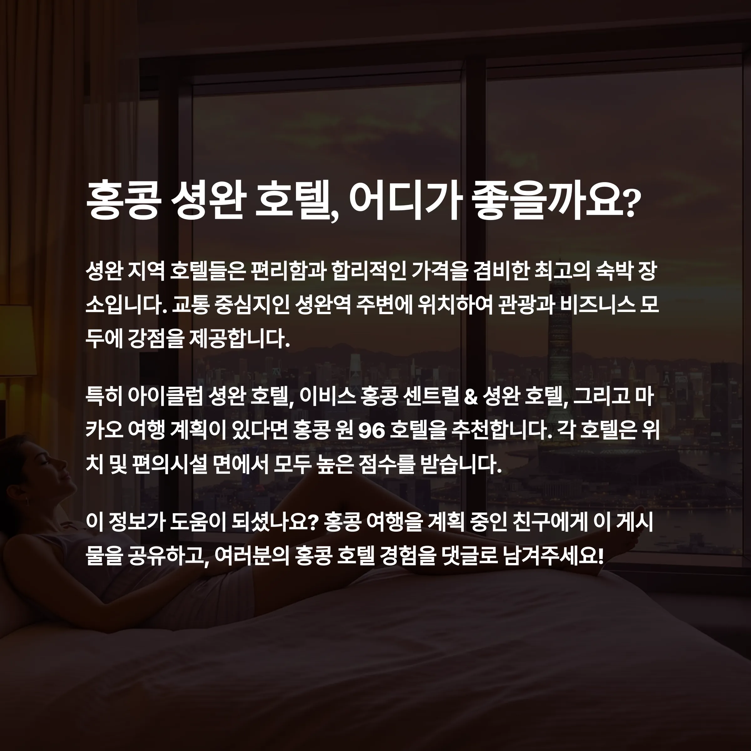안녕하세요, 여행님! 홍콩 여행을 계획하다 보면 숙소 선택은 늘 어렵죠.