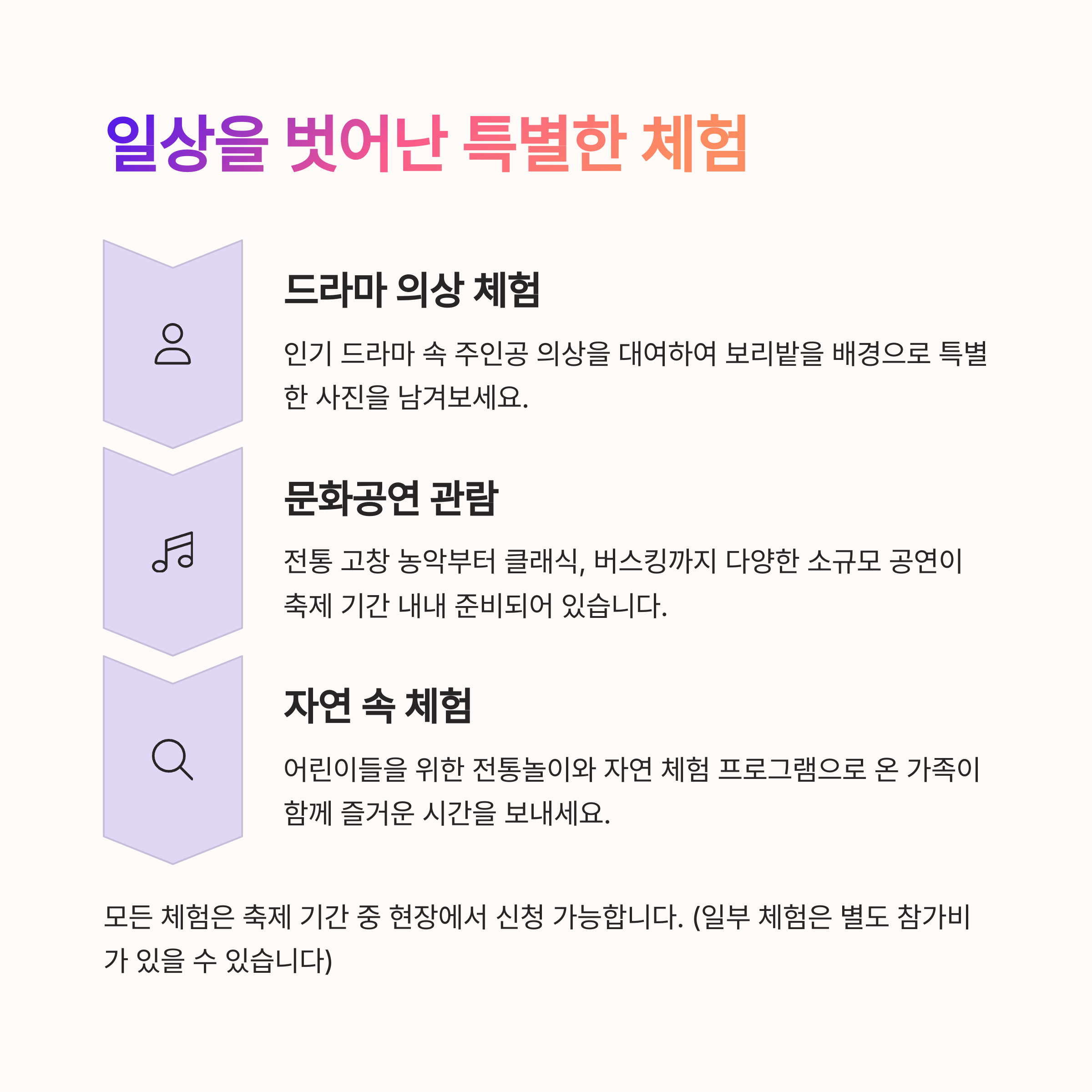 2025 고창 청보리밭축제에서 무슨 프로그램에 참여해야 좋을지 고민이 많으셨죠?